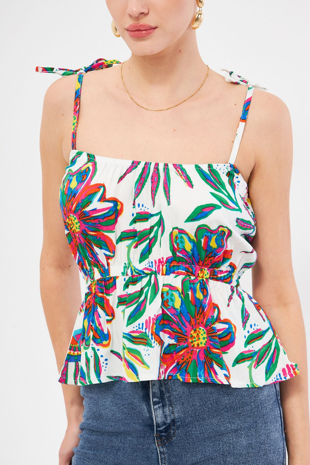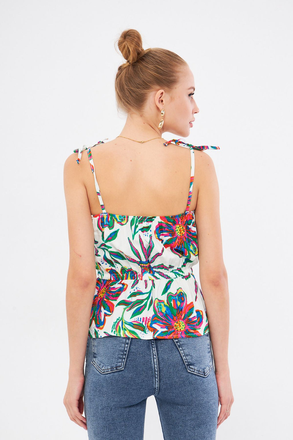 Women's Fuchsia Patterned Waist Waist Hangers Connect Detailed Strapless Crop blouse ARM-24Y0011166
