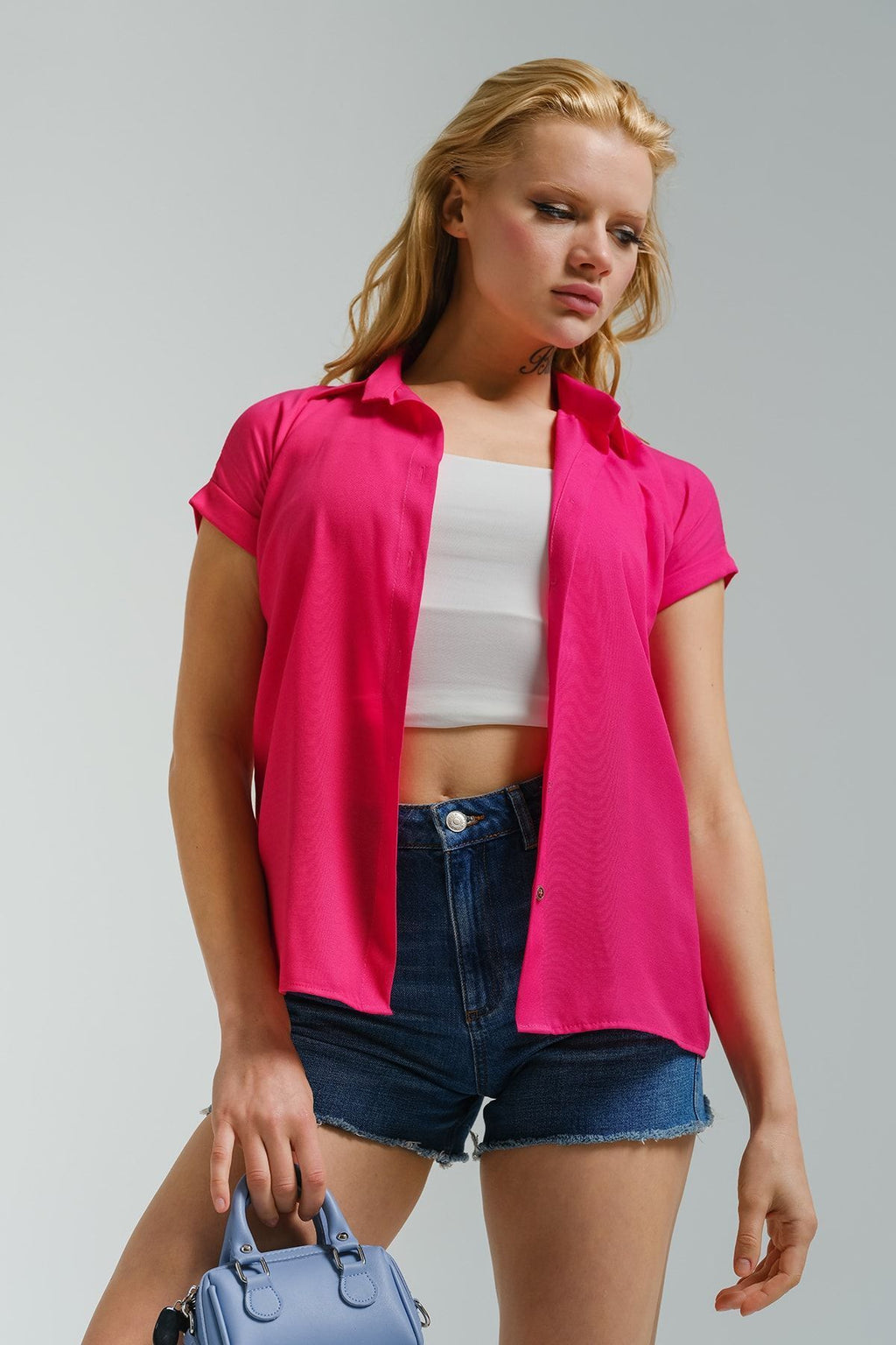 Women's Fuchsia Short Sleeve Shirt ARM-19Y001065