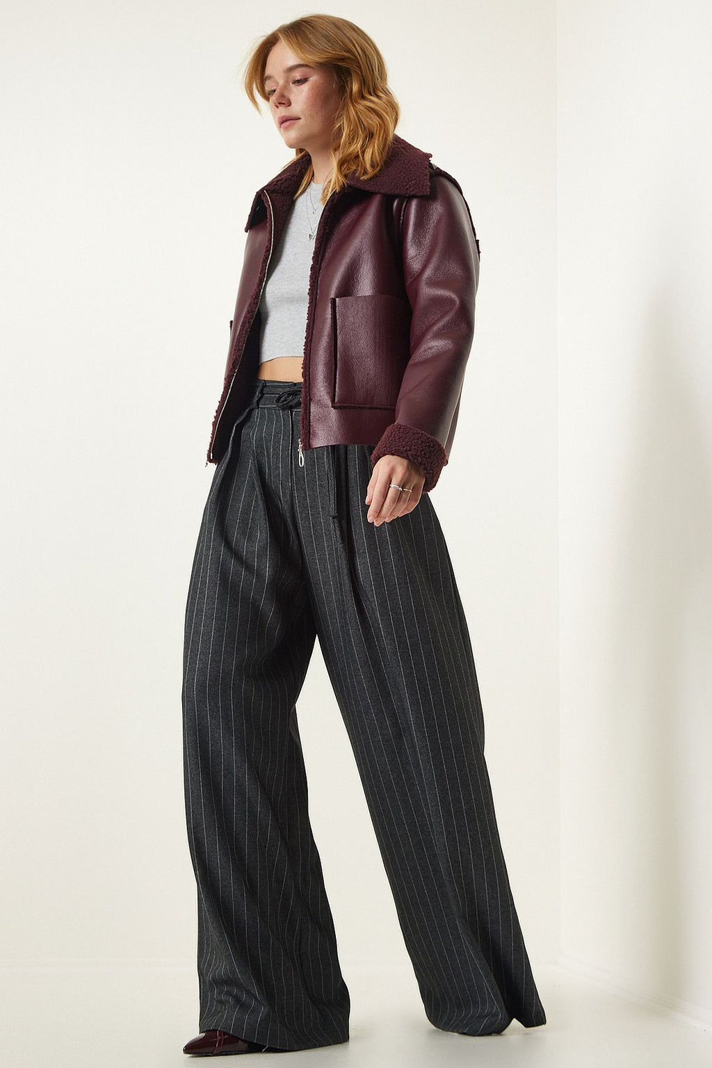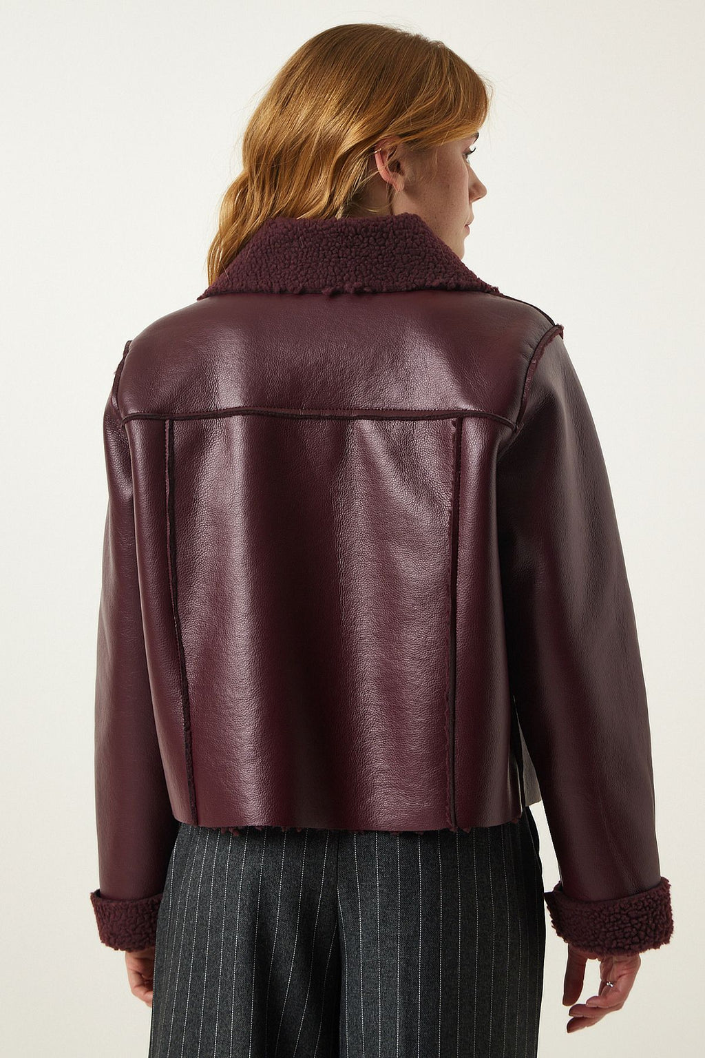 Women's Fur Fur Yaka Wide Pocket Artificial Leather Jacket TP00027
