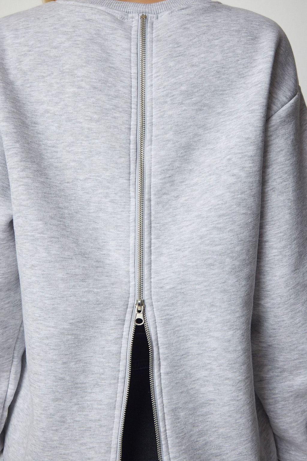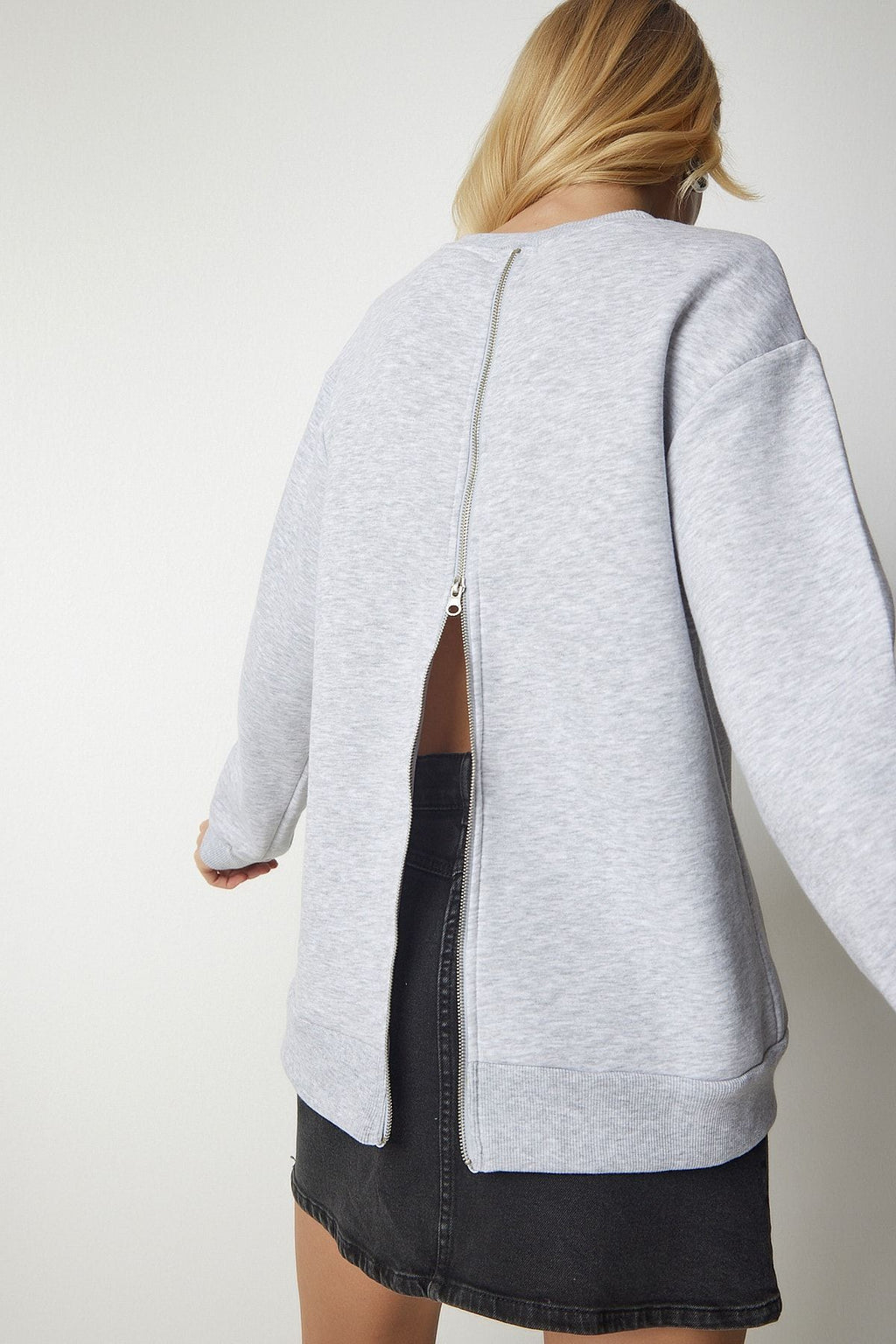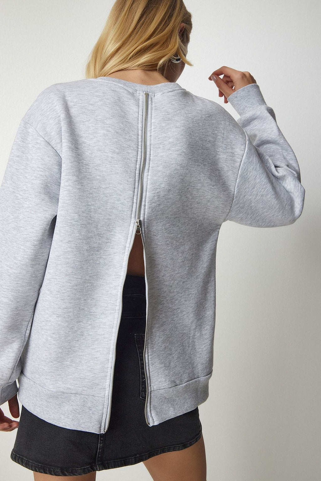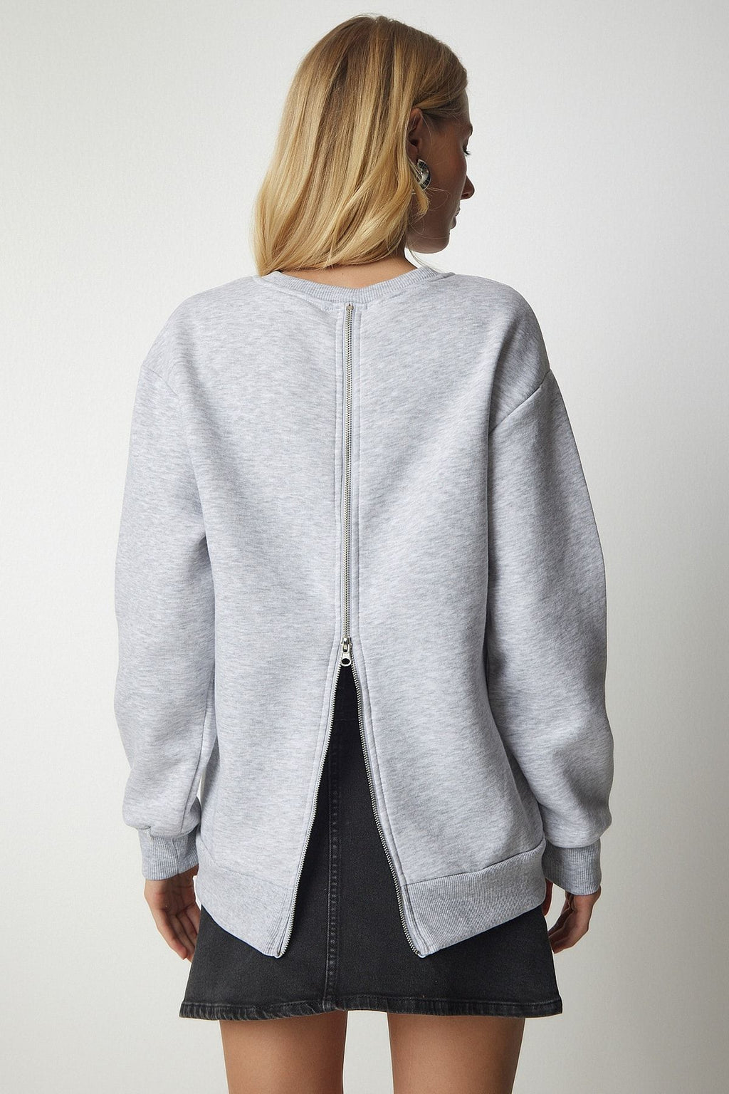 Women's gray behind zippery -rich knitting sweatshirt ub00146