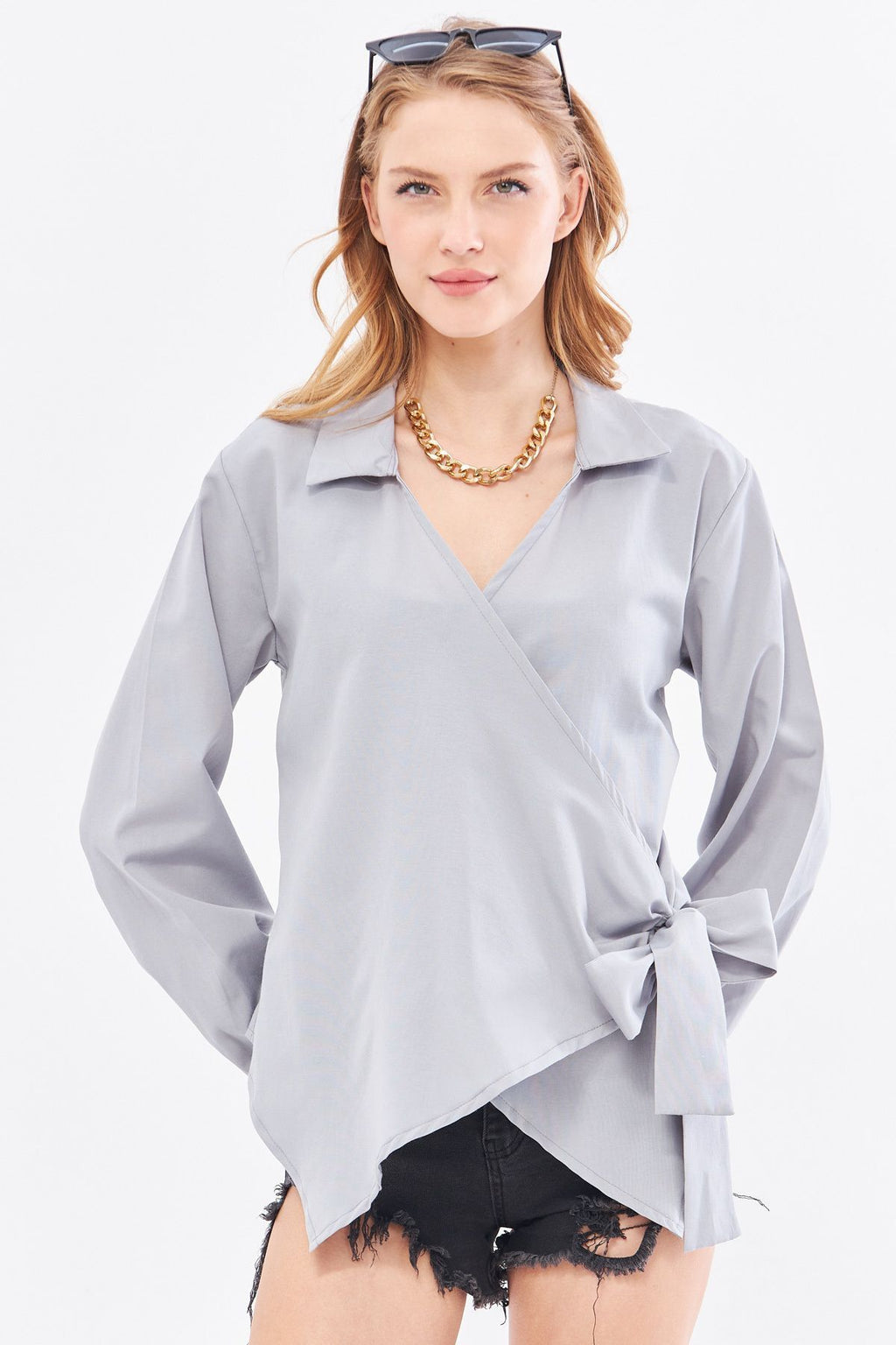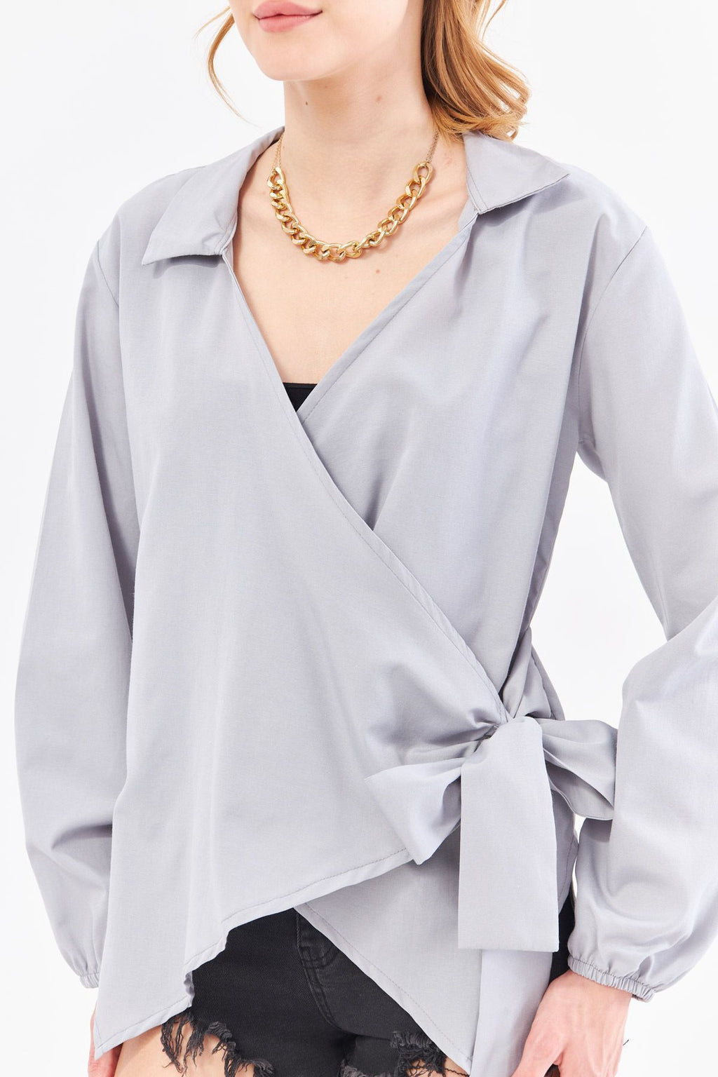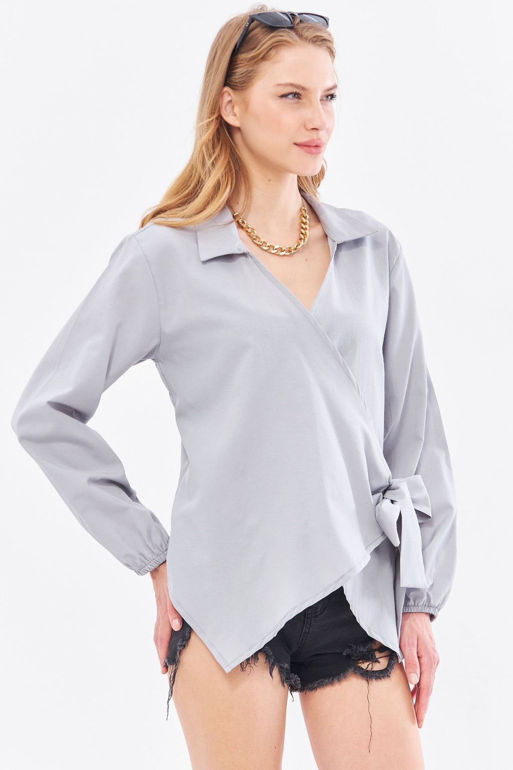 Women's Gray Collar Cruve Blouse ARM-22Y024025