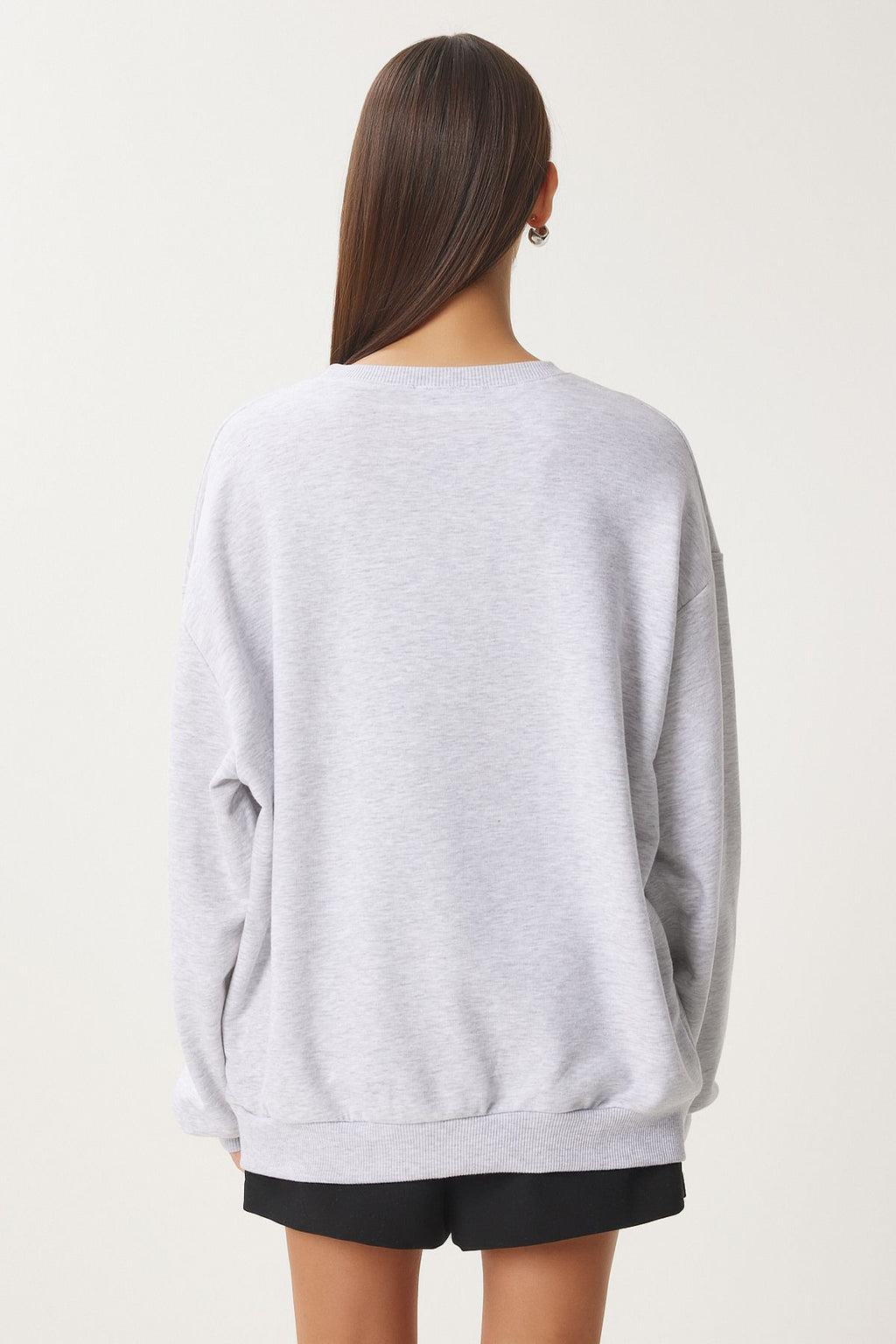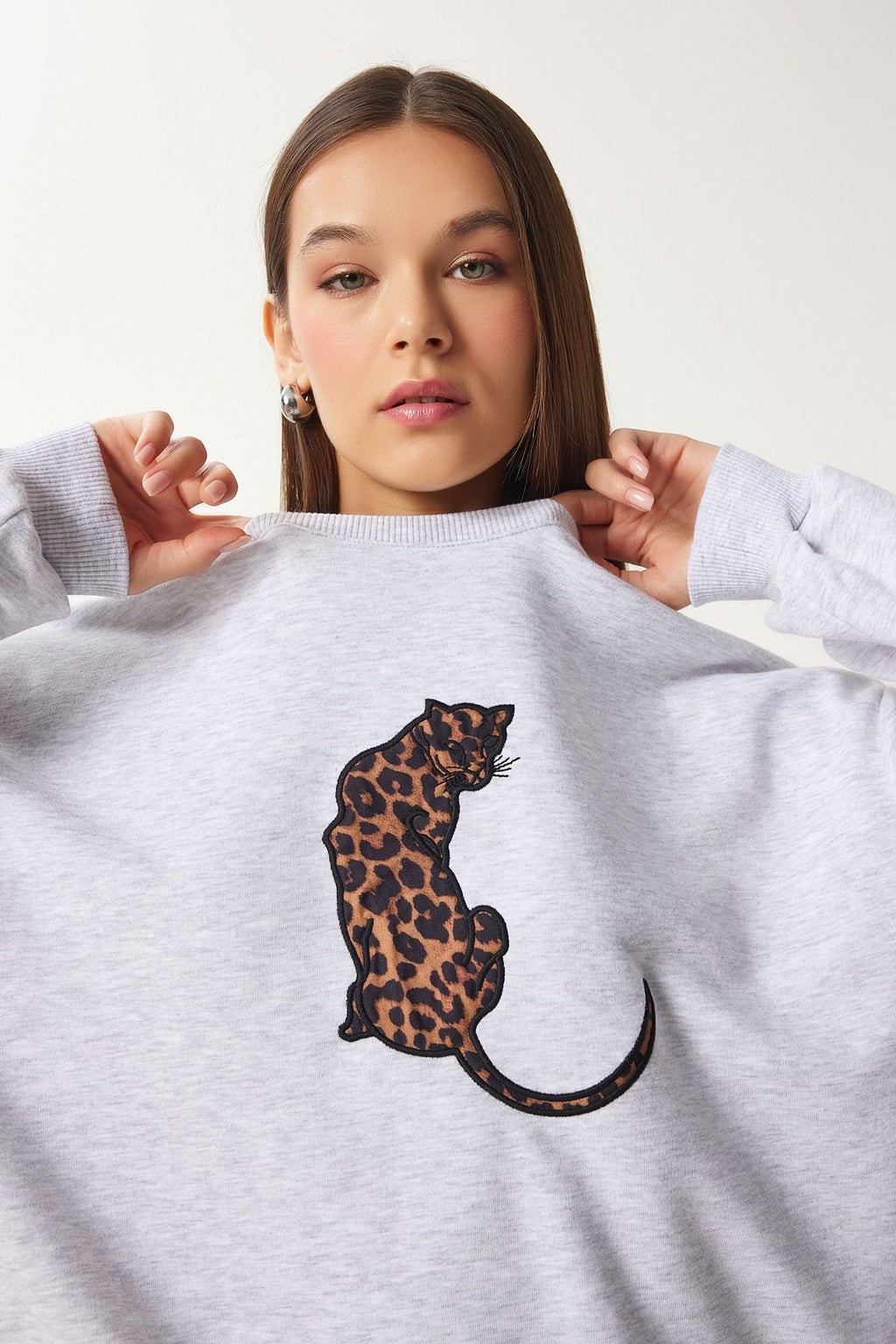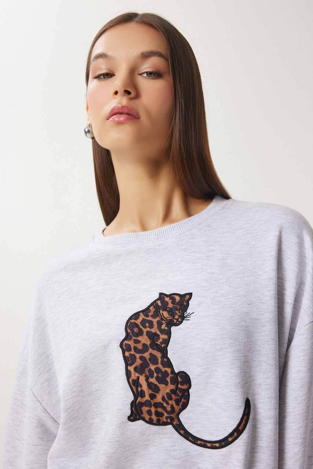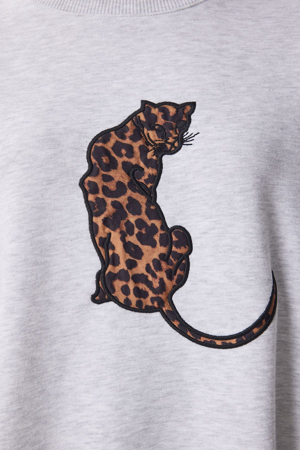 Women's gray leopard embroidery overwhell knit Sweetshirt FN03428