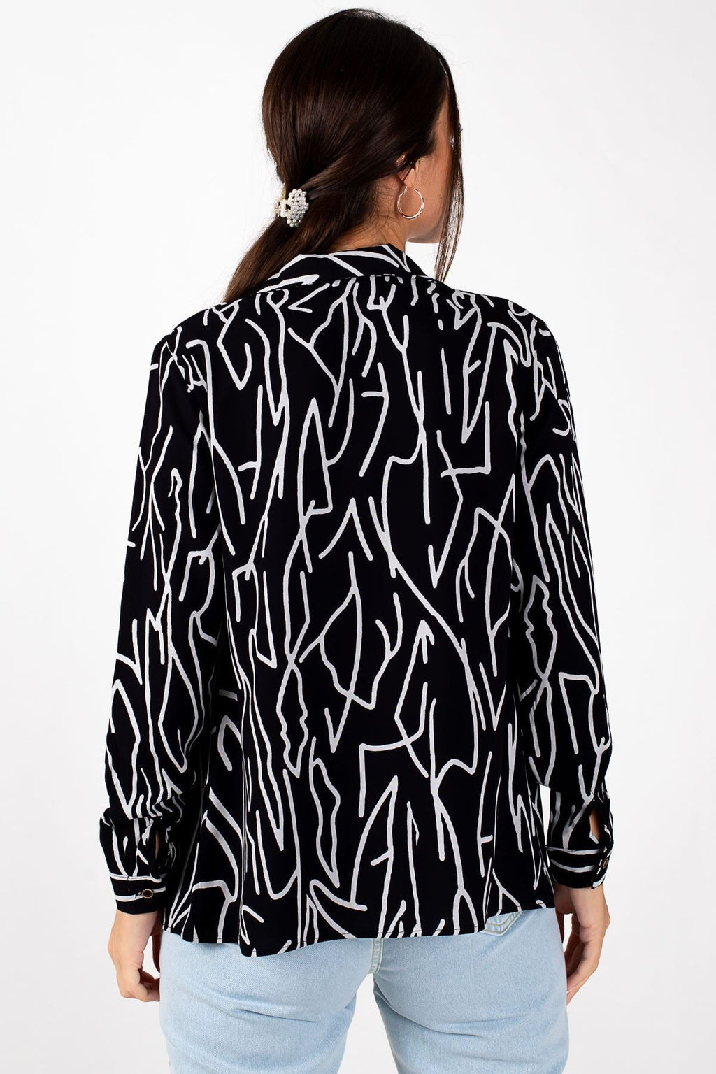 Women's Gray Line Pattern Long Sleeve Shirt ARM-20Y001002