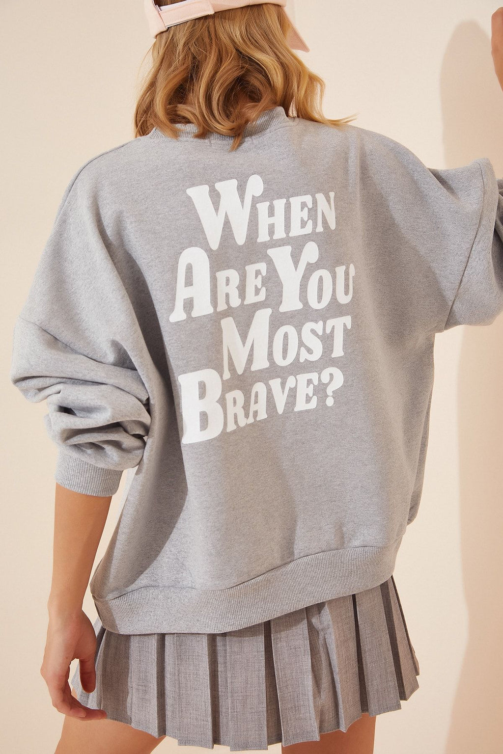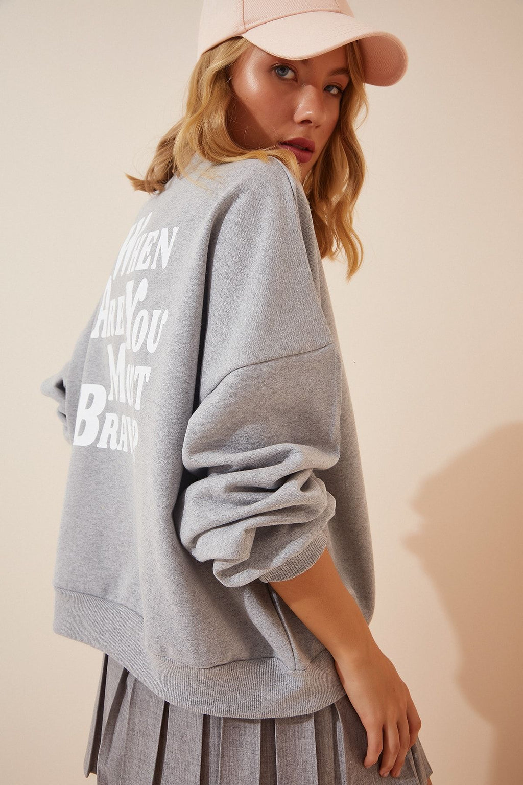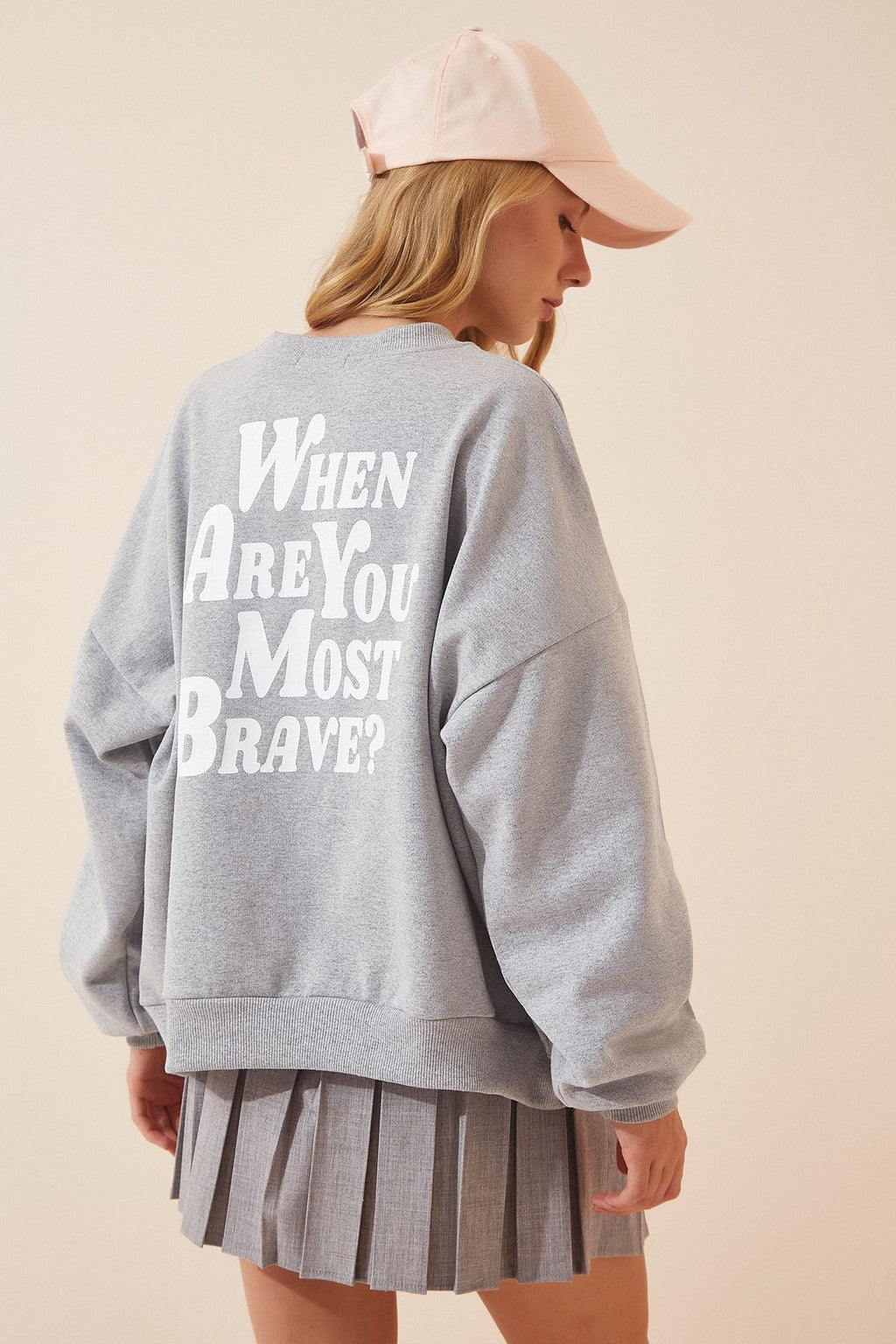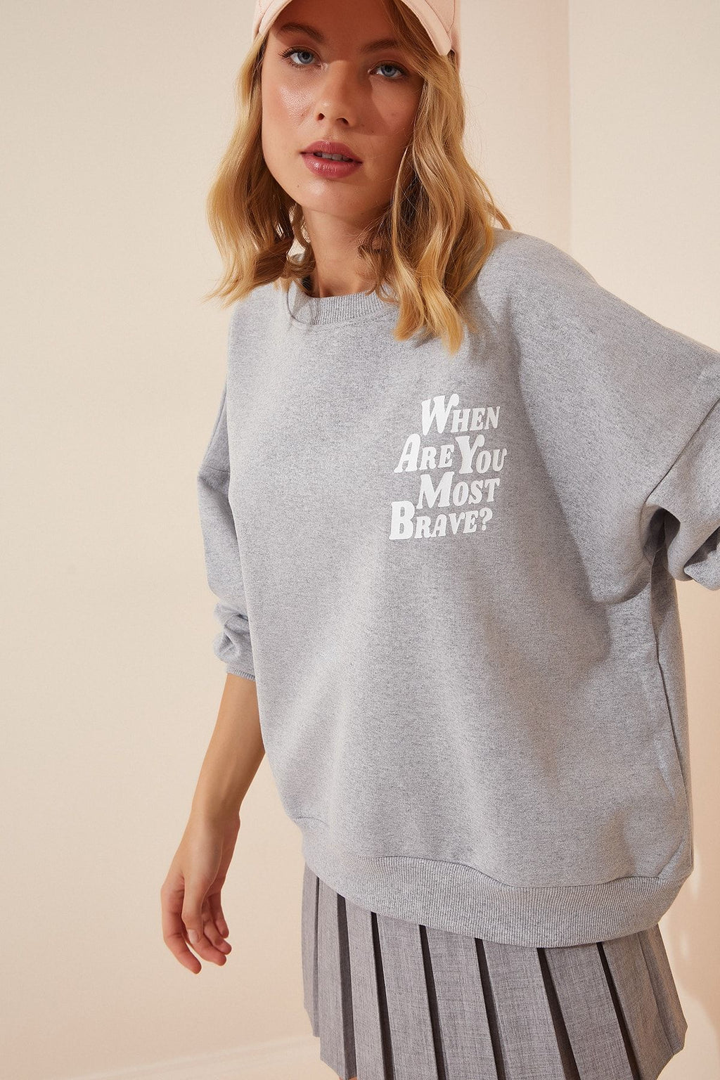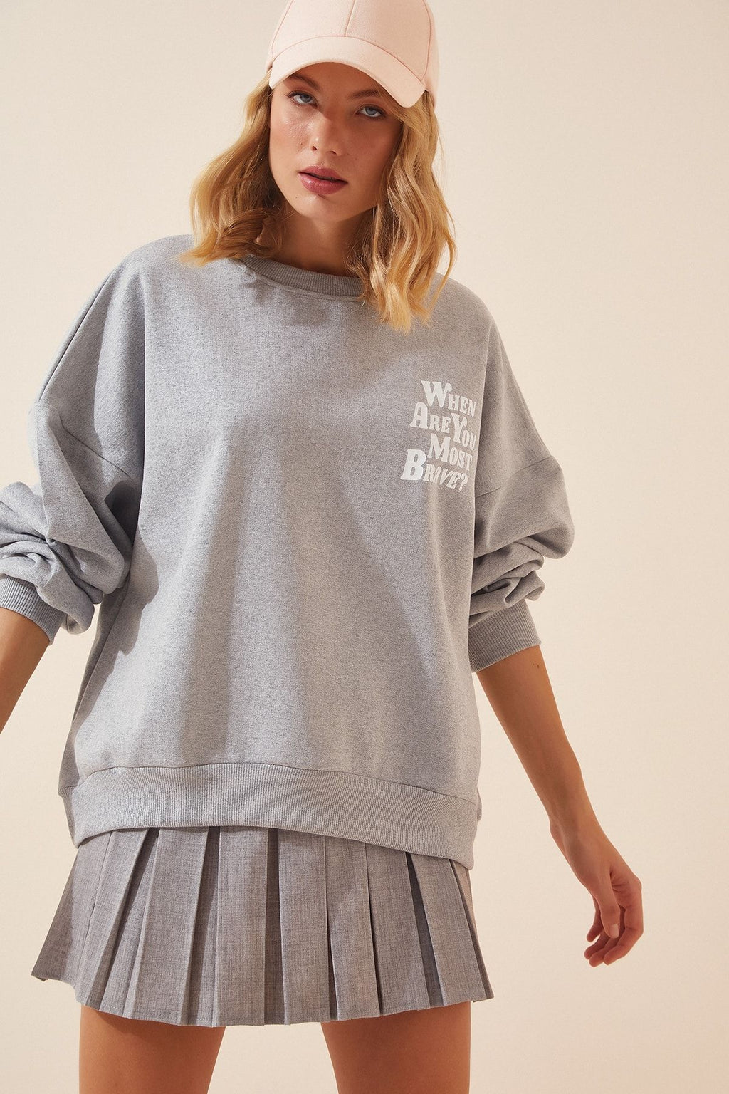 Women's Gray Melange Printed Basic Sweatshirt DZ00001