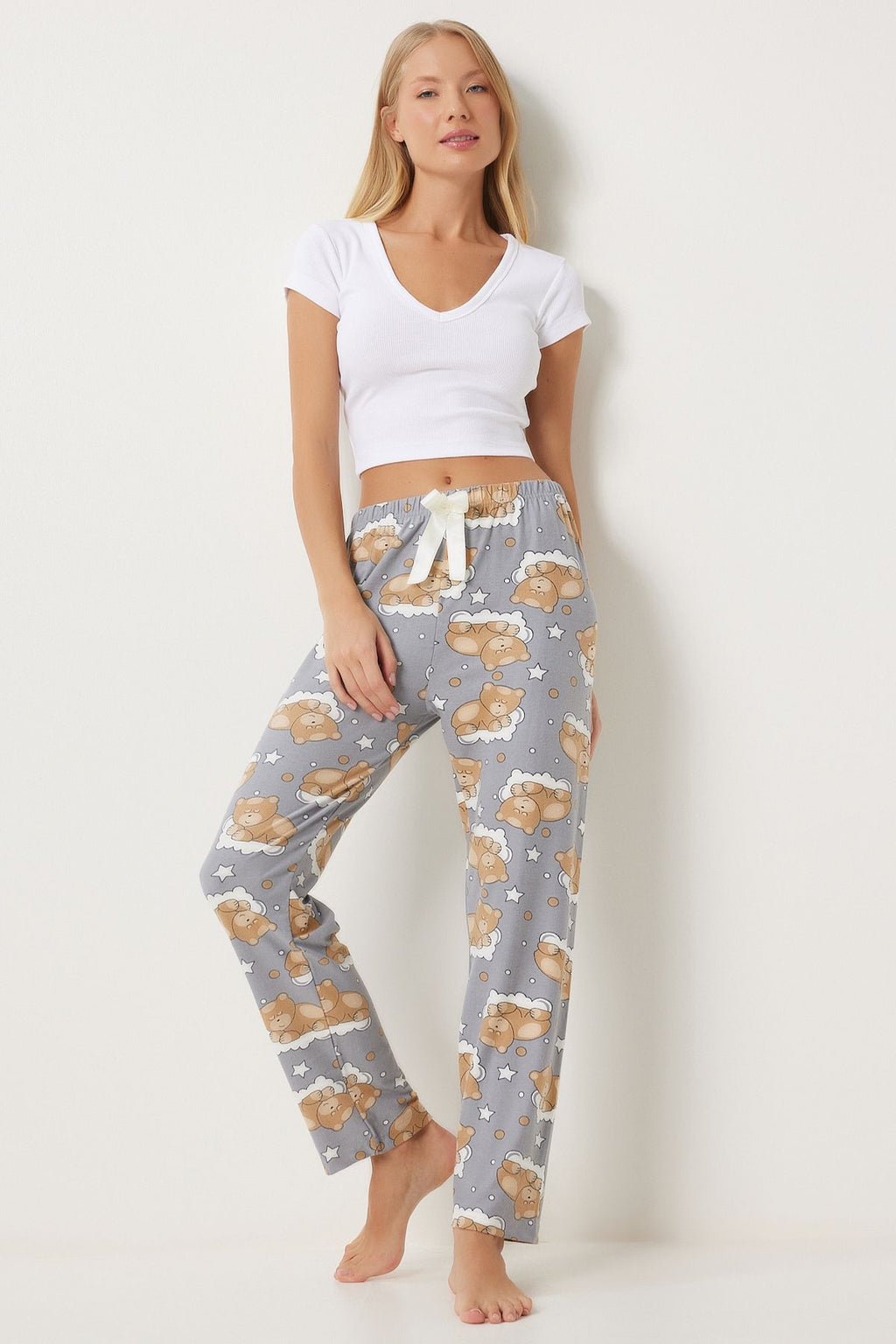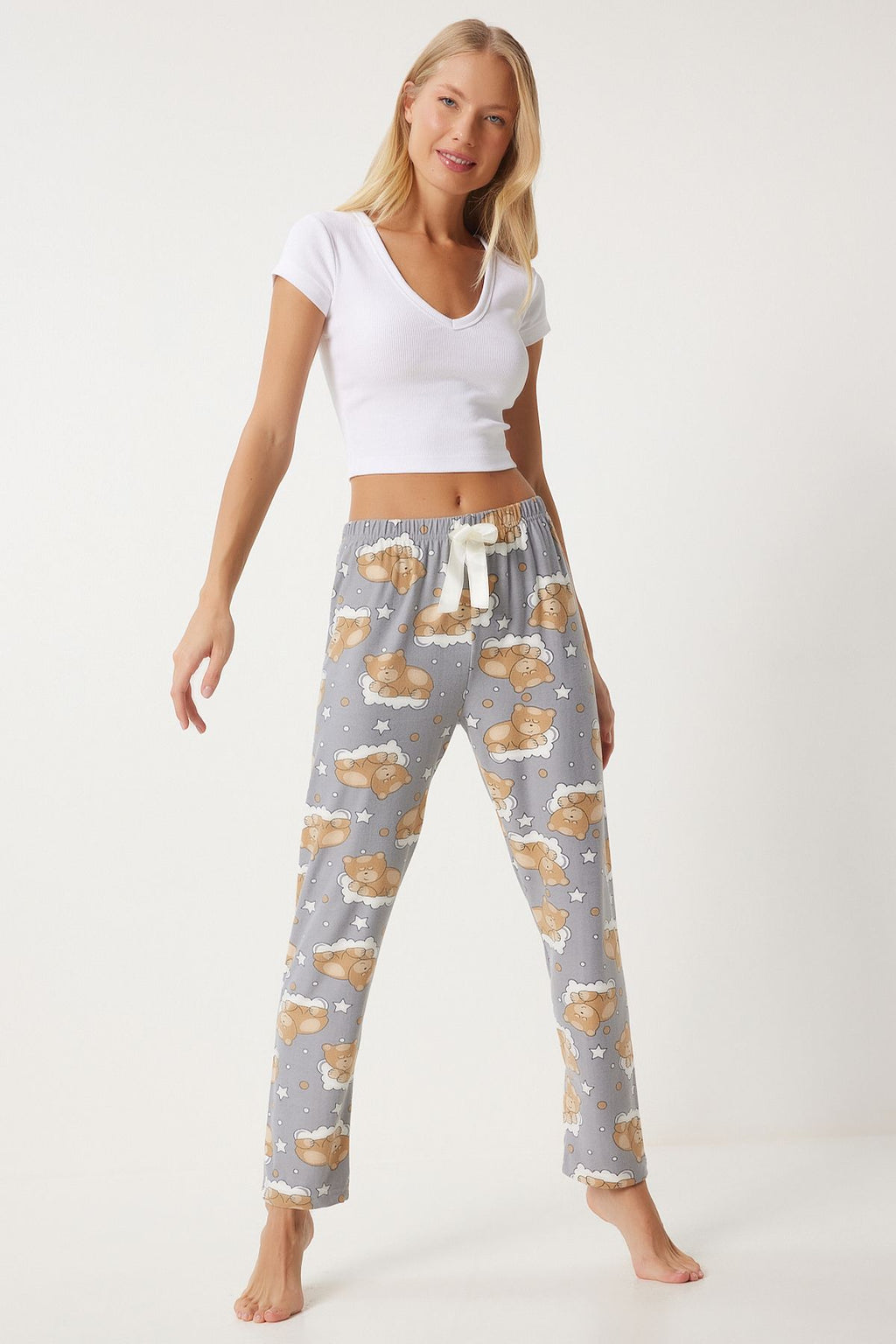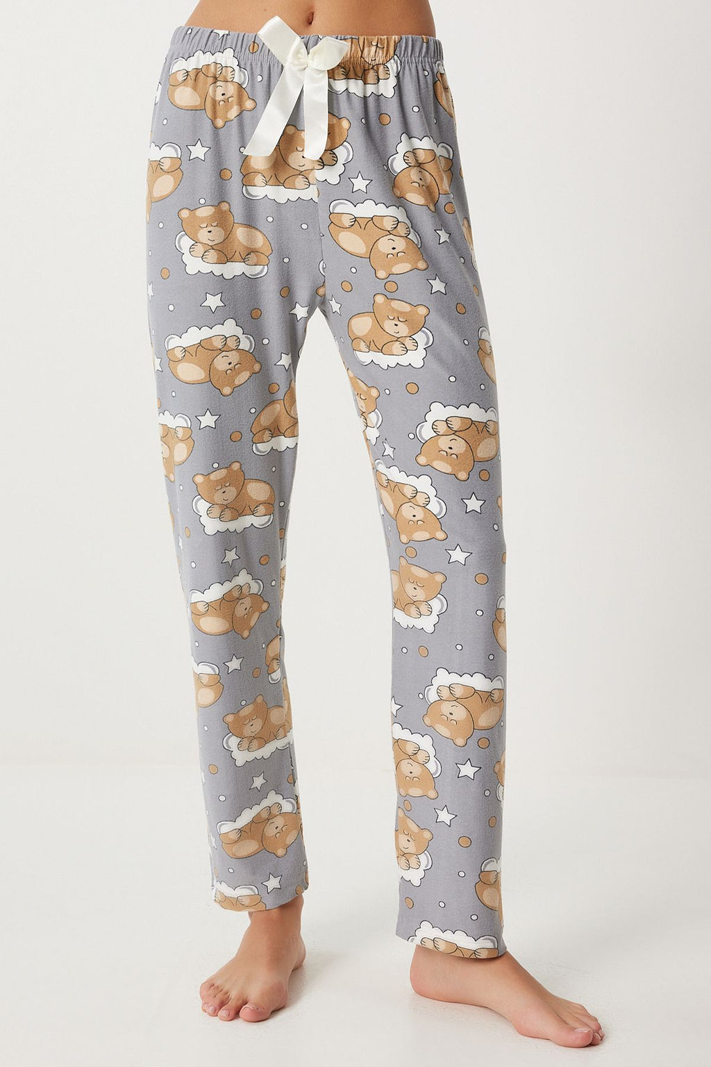 Women's Gray Patterned Soft textured knitting pajamas Six EC00047