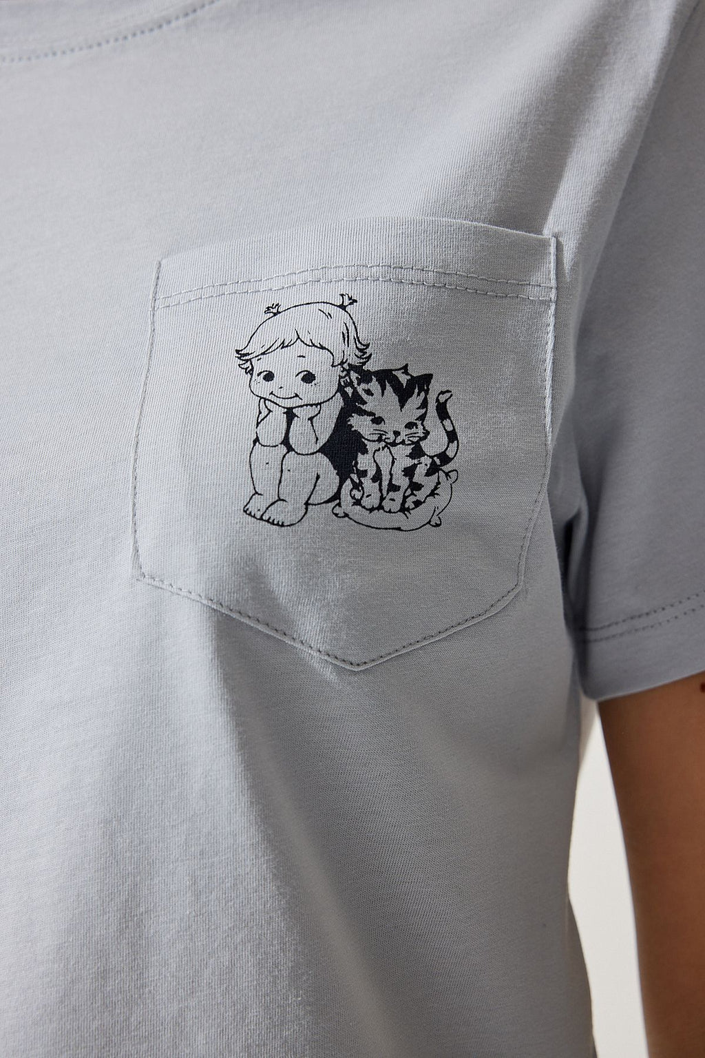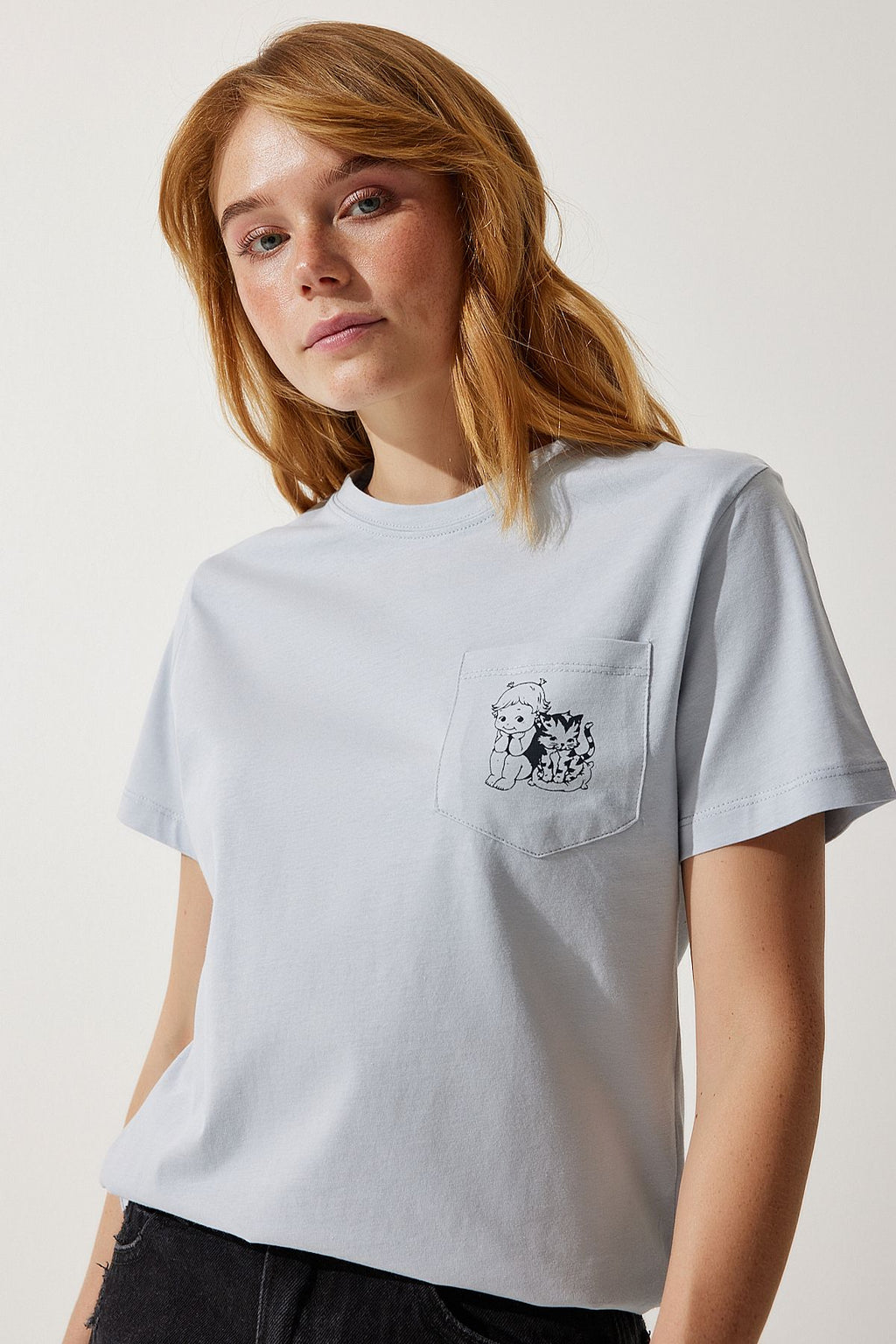 Women's Gray Pocket Knitting T-Shirt UB00252