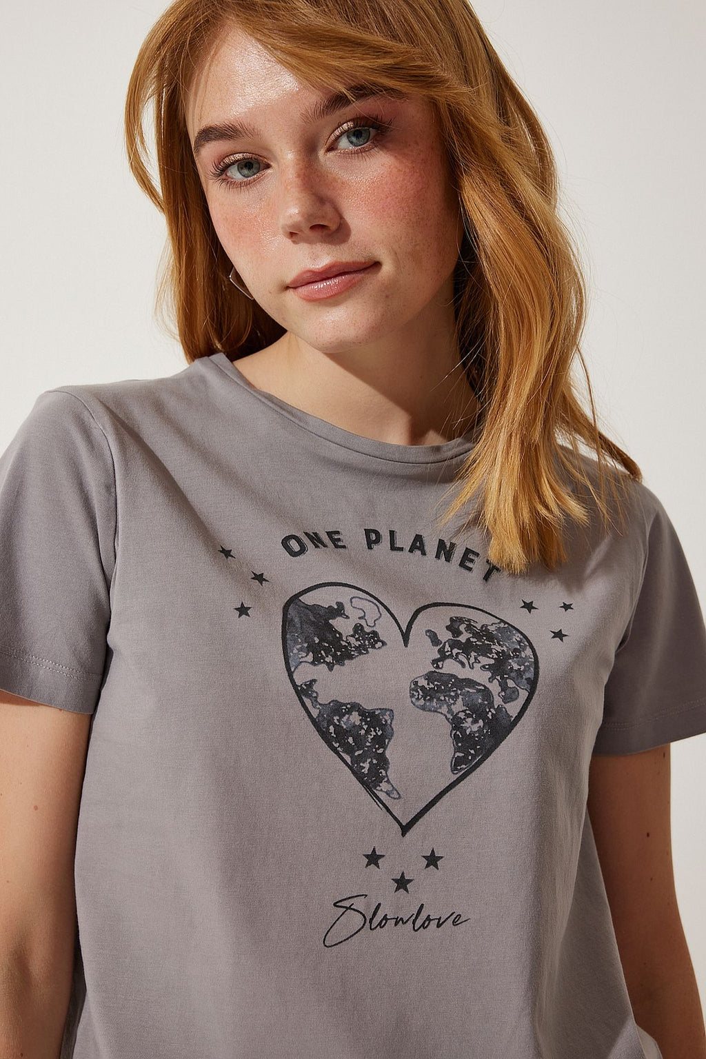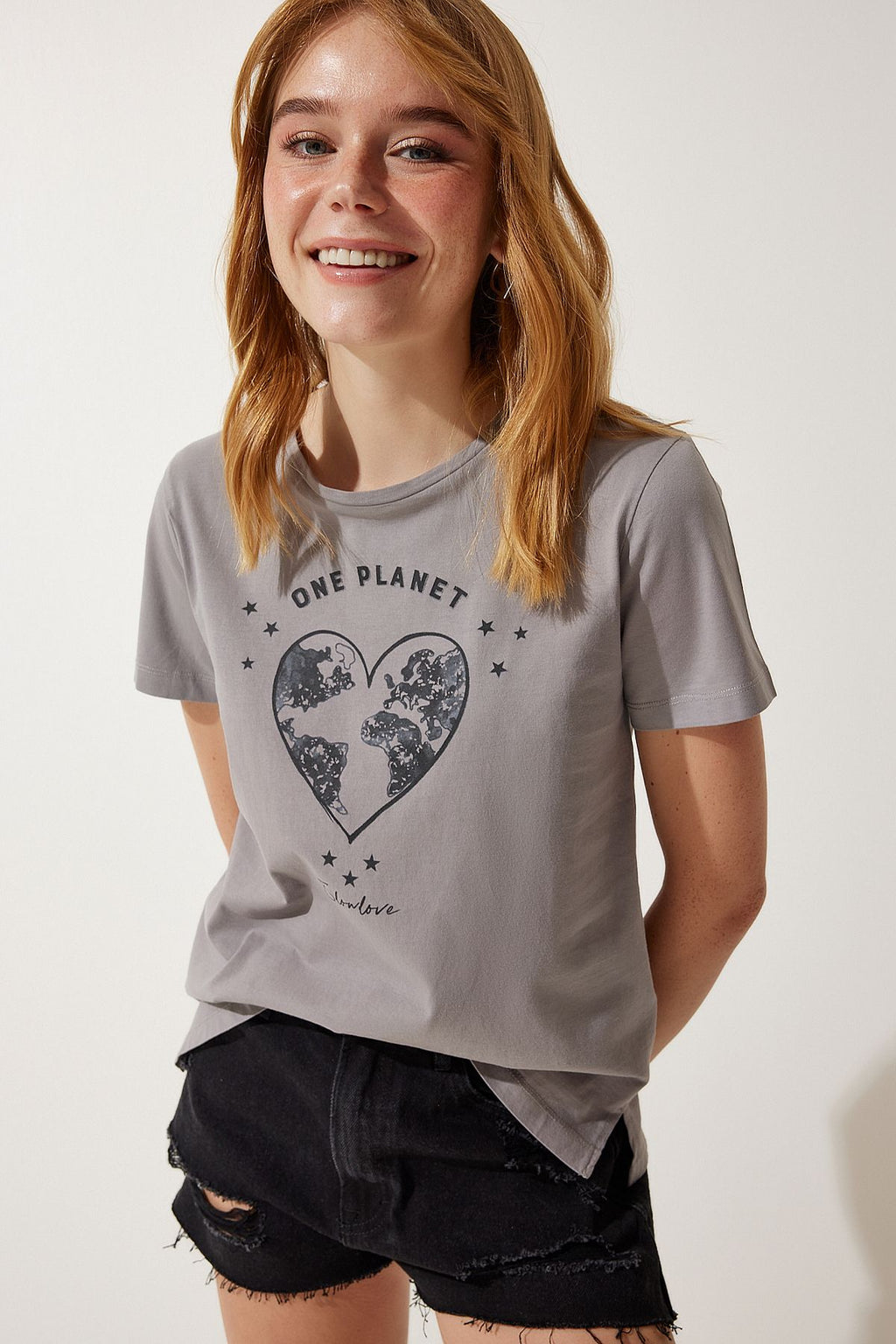 Women's Gray Printed Knitting T-Shirt Wo00035