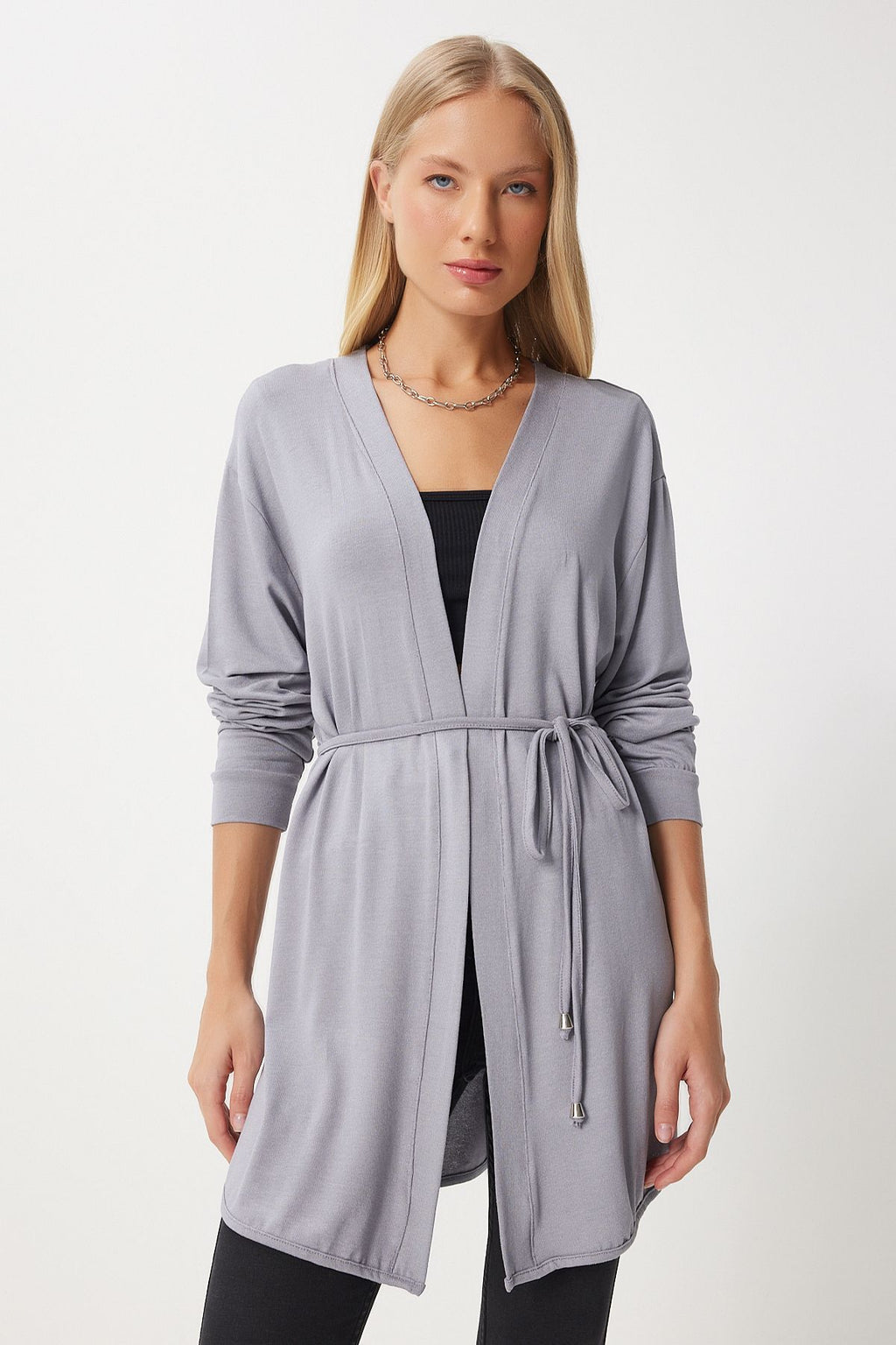 Women's Gray Seasonal Knitting Knitwear Cardigan EN00620