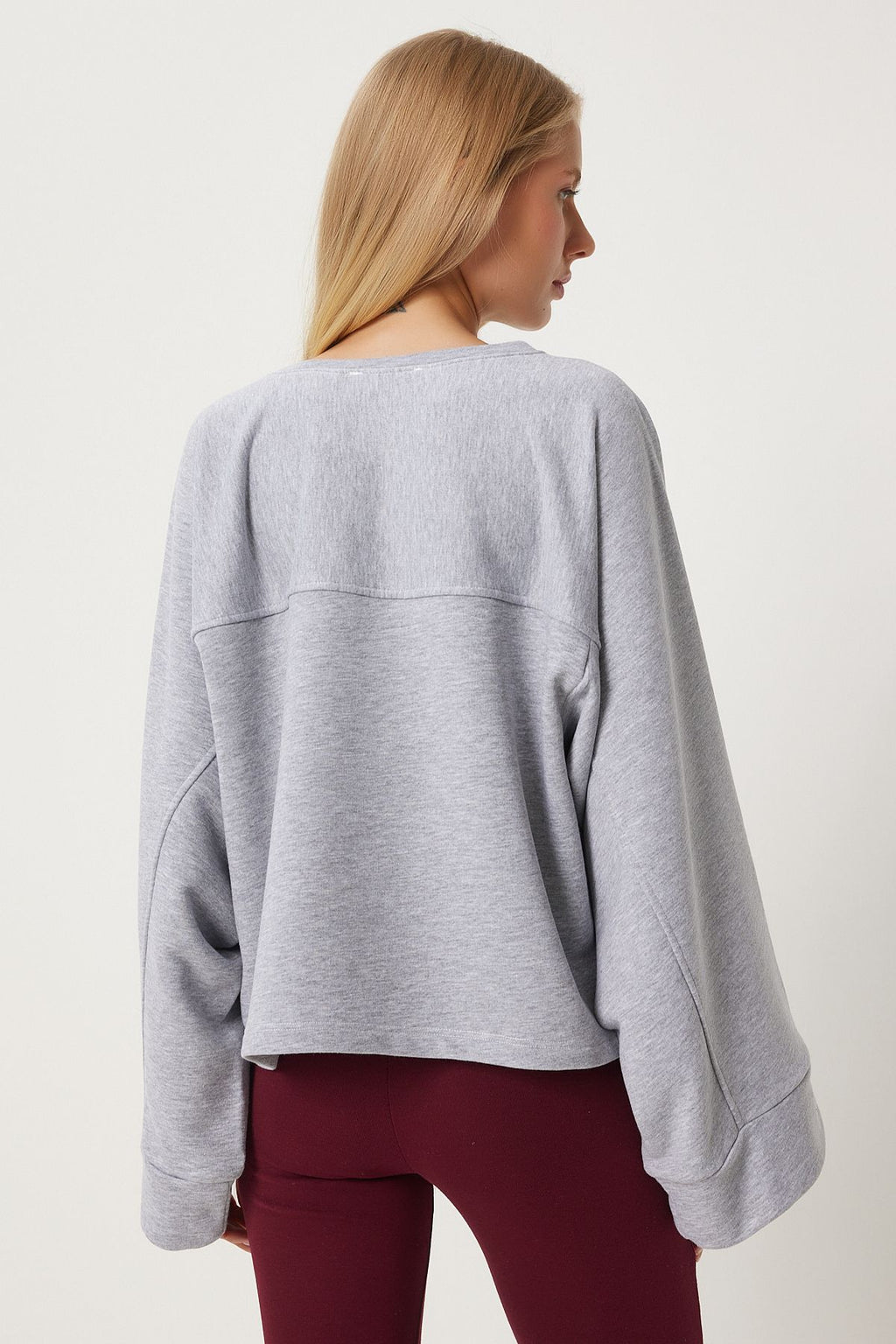 Women's Gray Wide Sleeve Oversize Knitting Sweatshirt FN03334