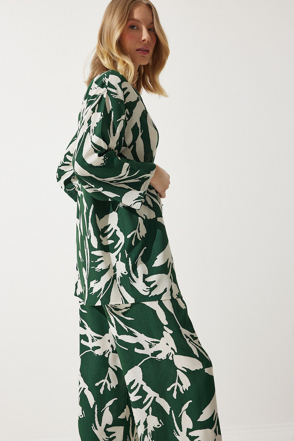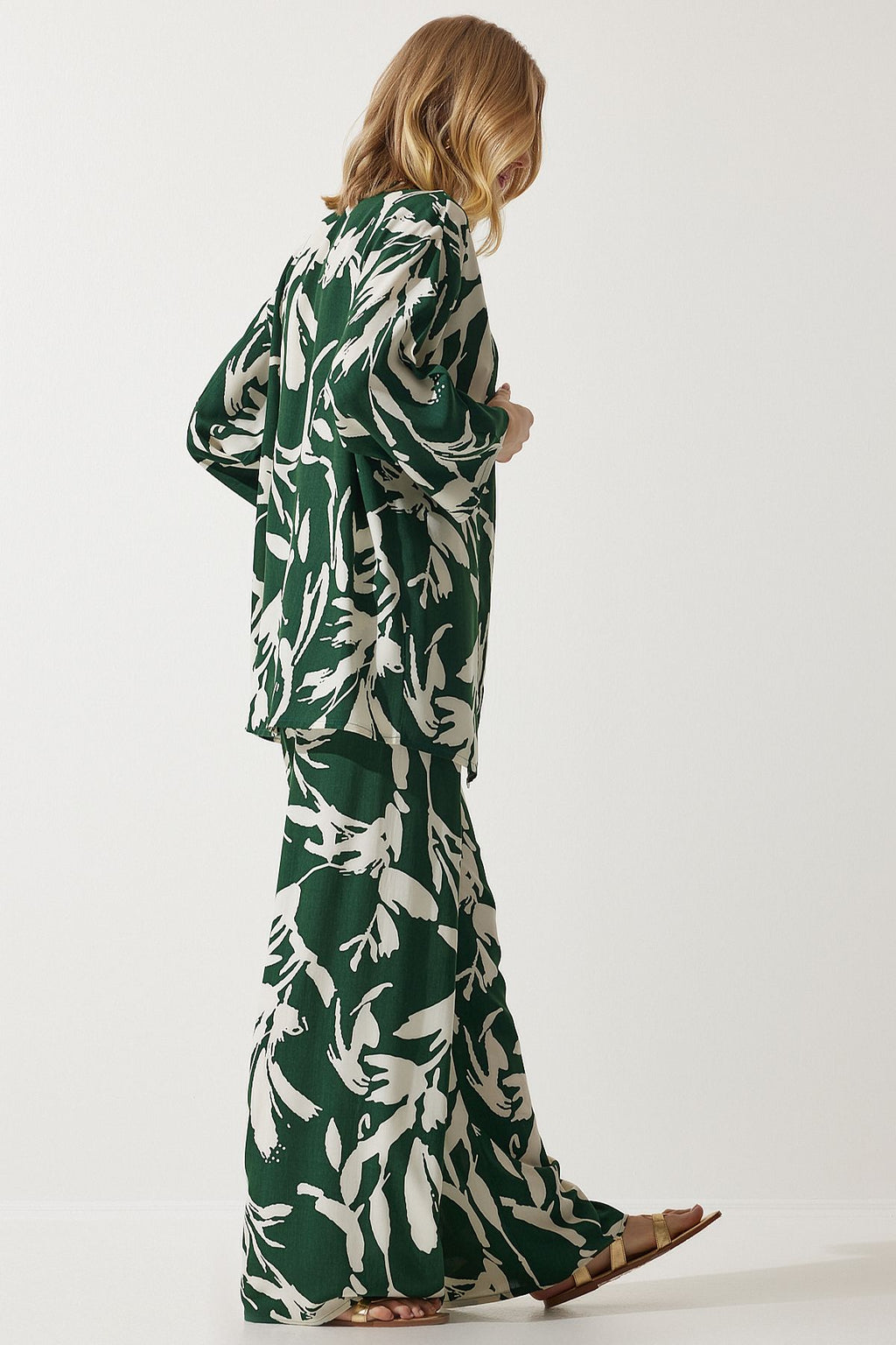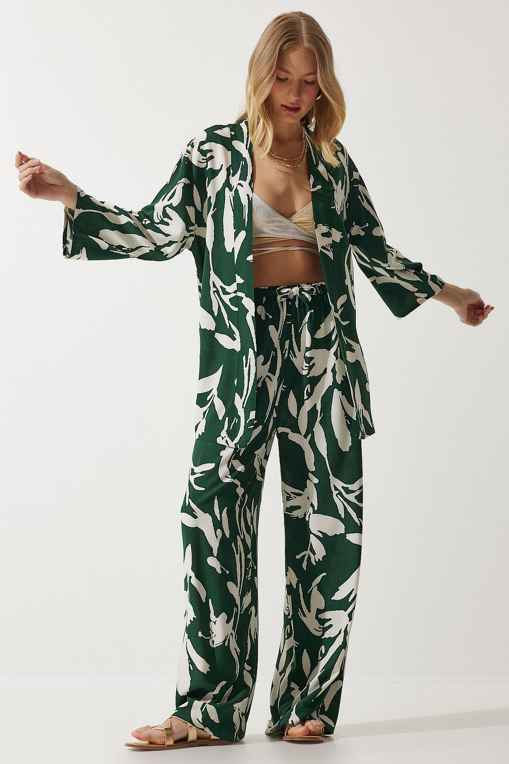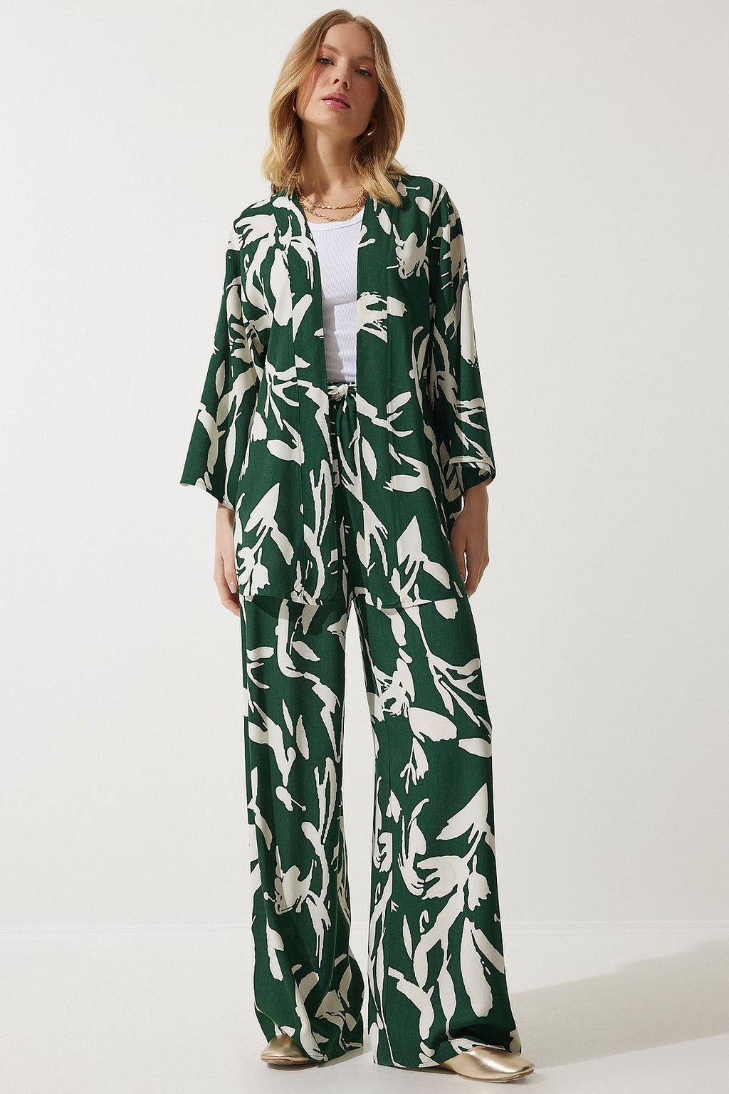 Women's Green Patterned Kimono Palazzo Pants Set EN00614