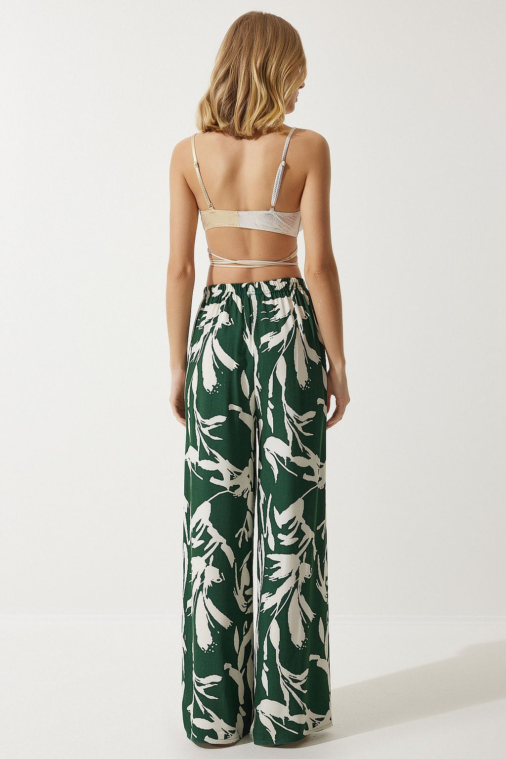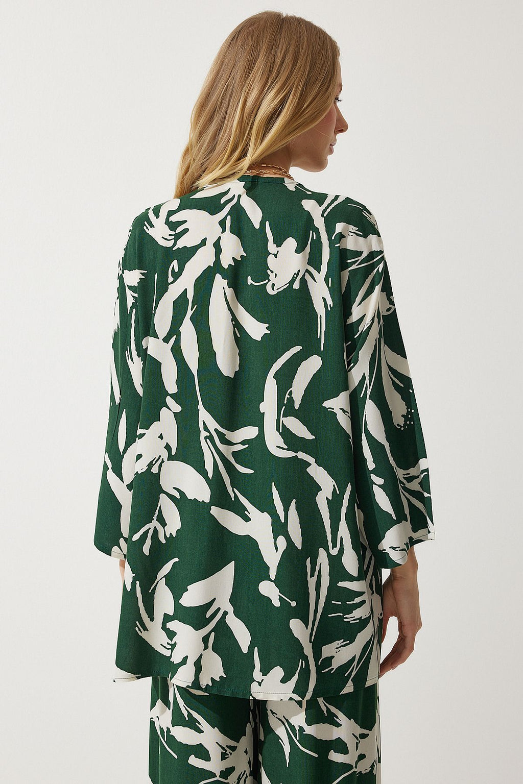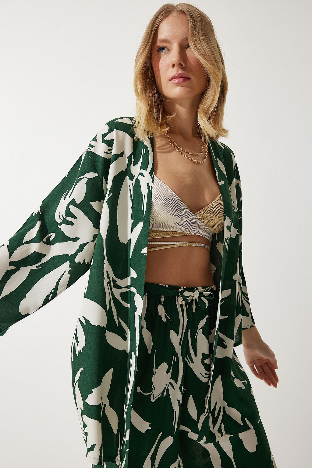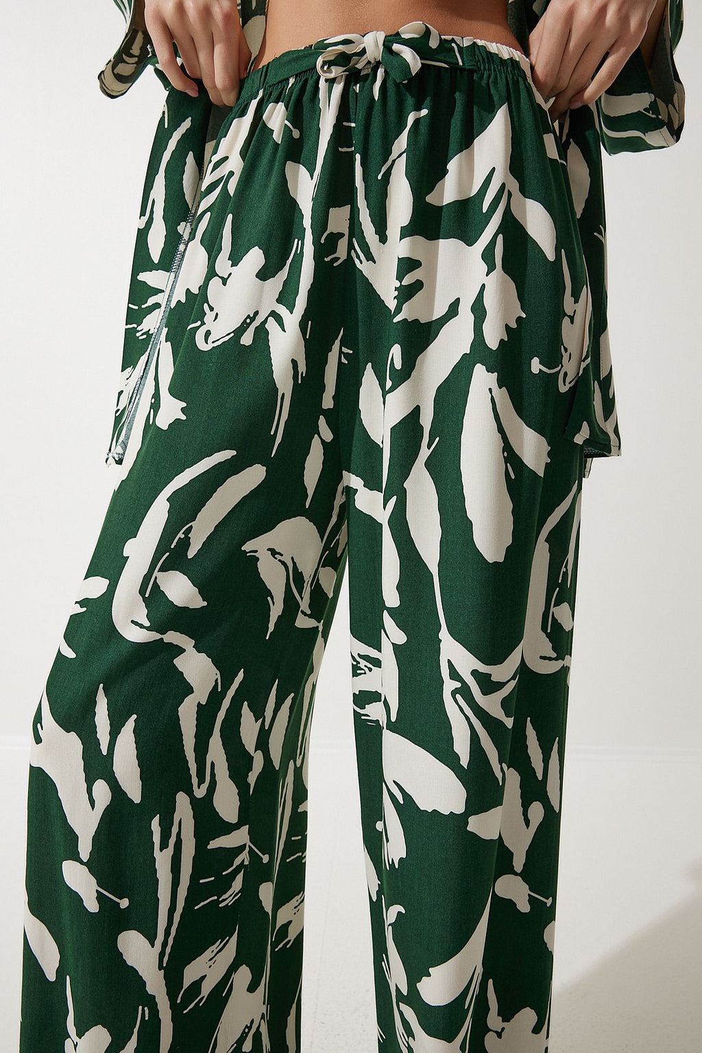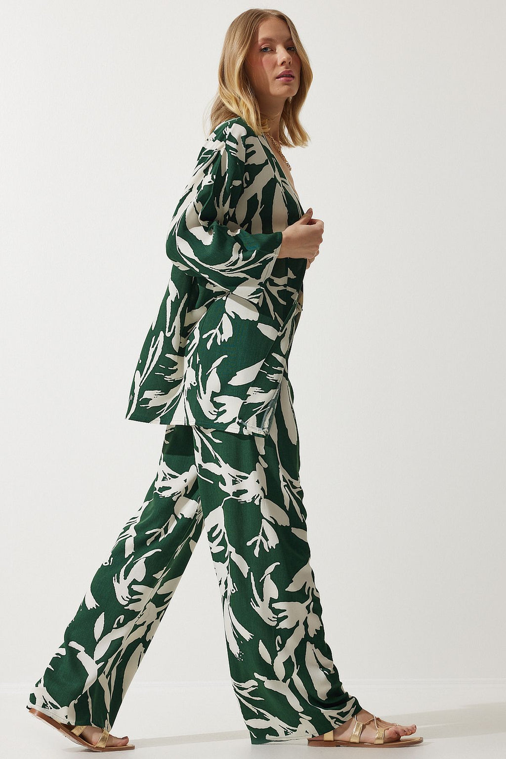 Women's Green Patterned Kimono Palazzo Pants Set EN00614
