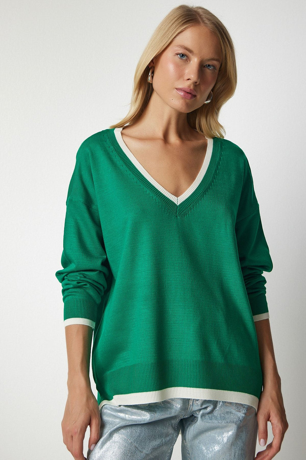 WOMEN'S GREEN V -YAKA OVERSIZE knitwear sweater BV00081