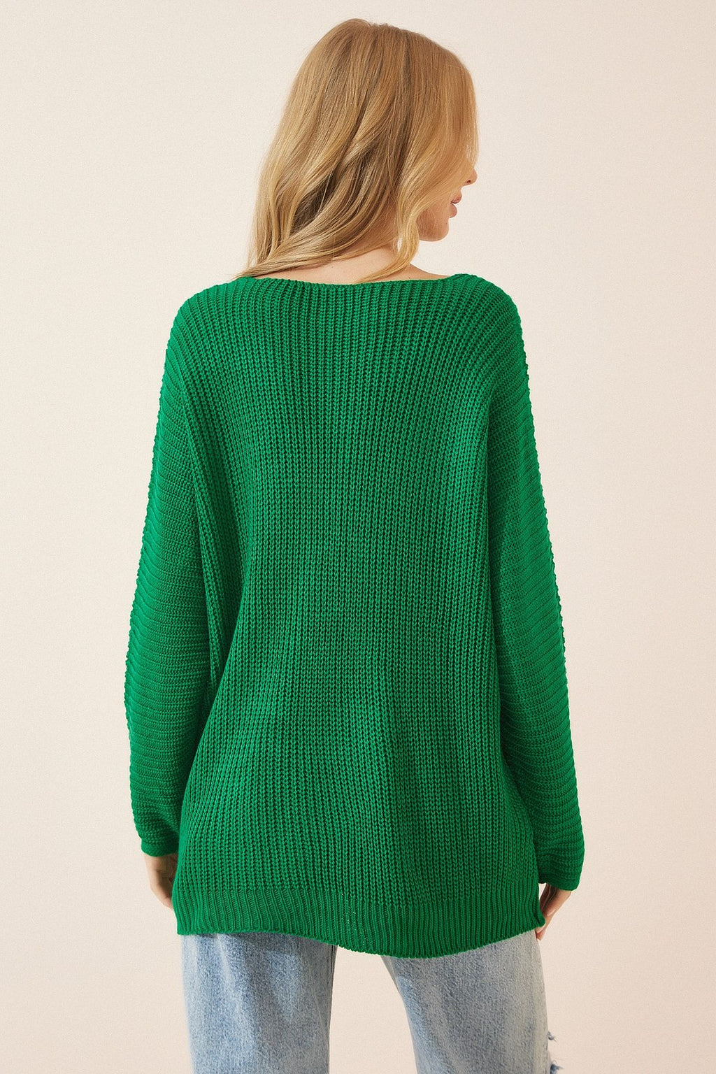 WOMEN'S GREEN V -YAKA SALIANIC KNITTING OVERSIZE knitwear sweater za00059
