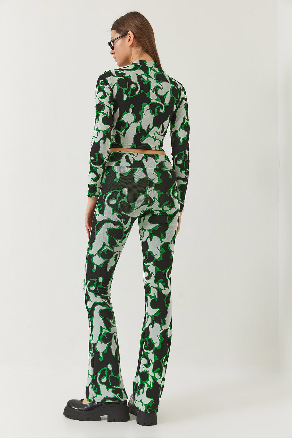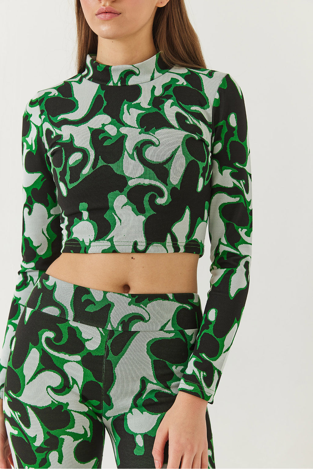 Women's Half Turtleneck Long Sleeve Crop Top and Bottom Set with Elastic Waist Trousers 60261375