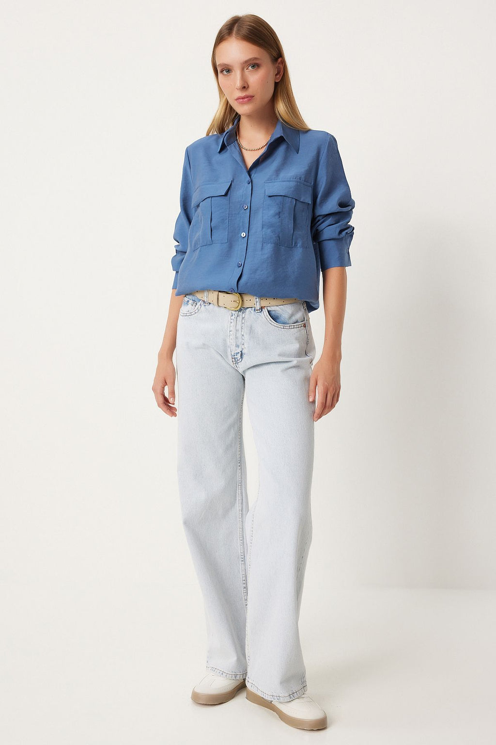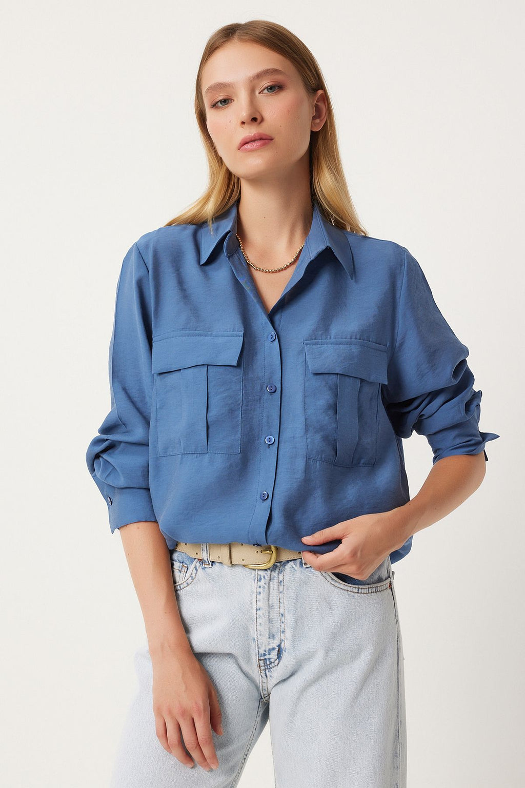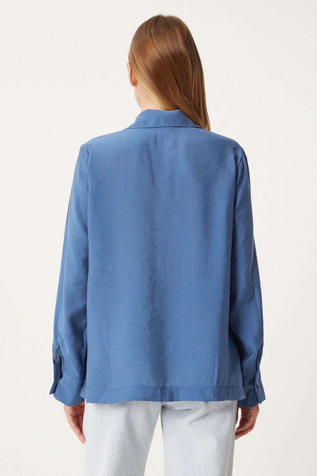 Women's Indigo Blue Wide Pocket Tensel Shirt FN03243