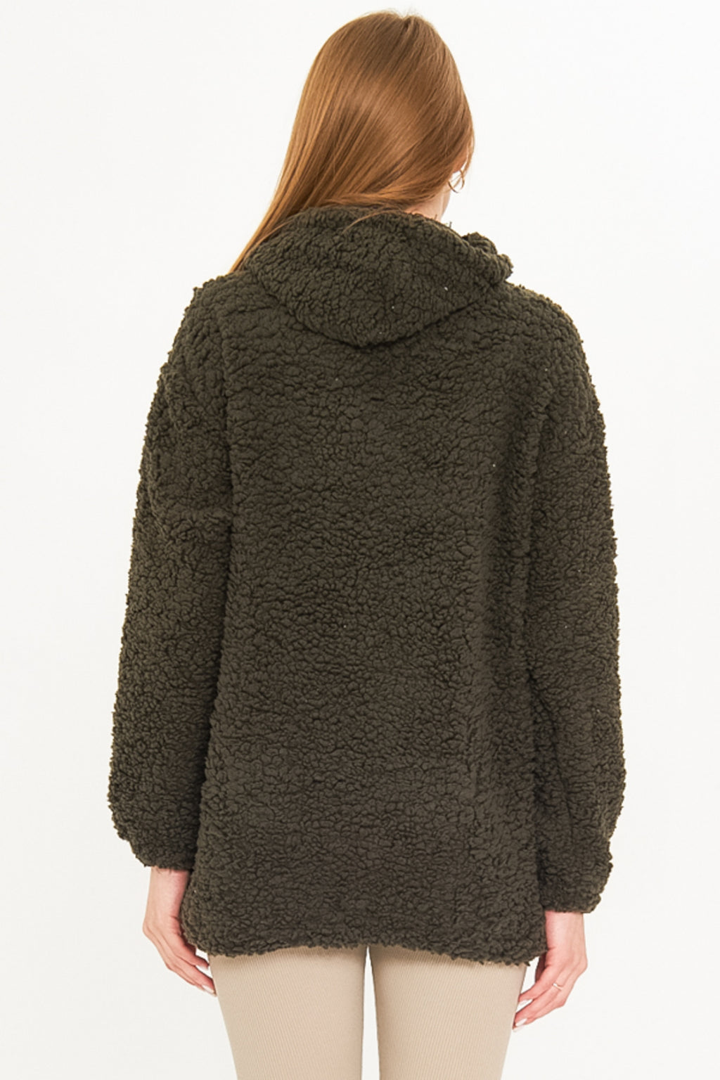 Women's Khaki Hooded Plush Sweatshirt with Pocket Cover ARM-25K001090