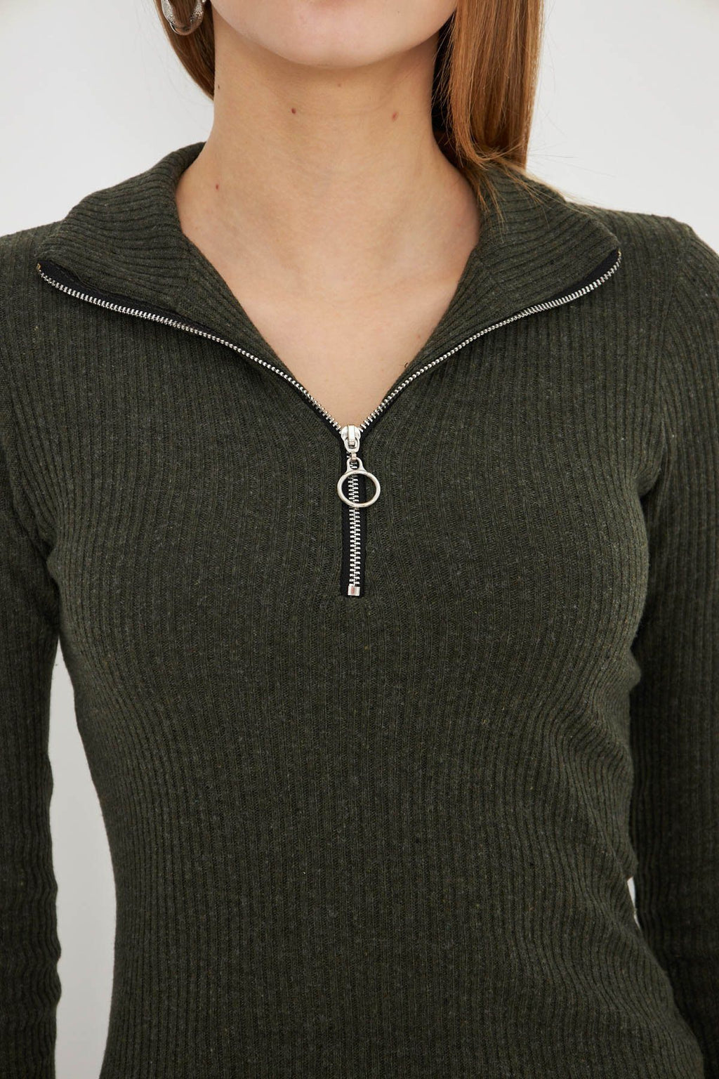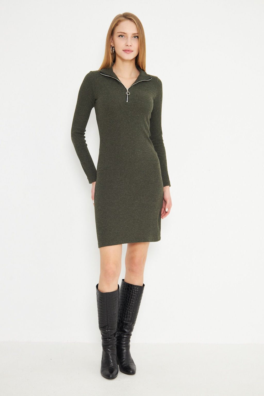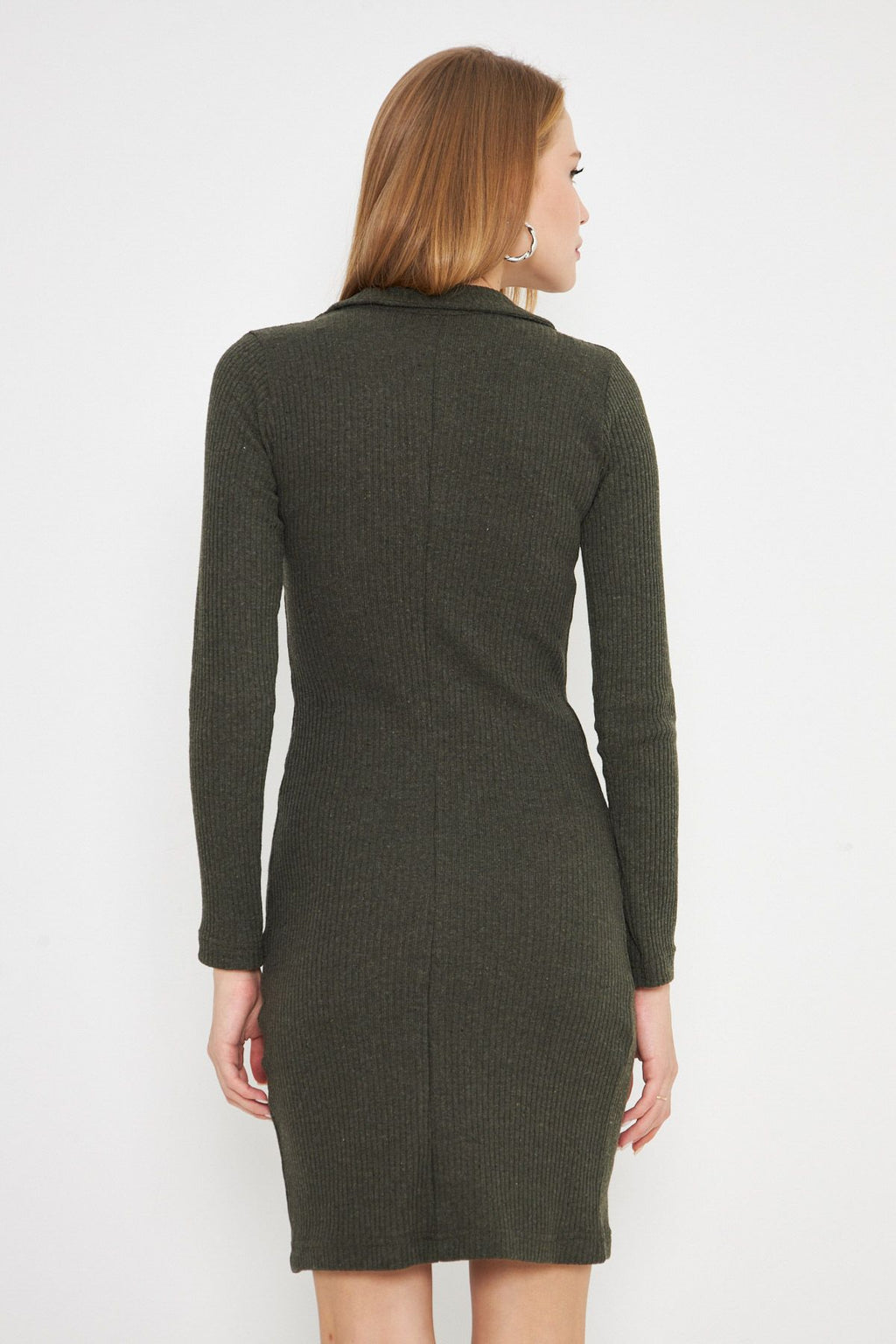 Women's Khaki Yakası Zippered Cashcorse Knee Dress ARM-24Y001001