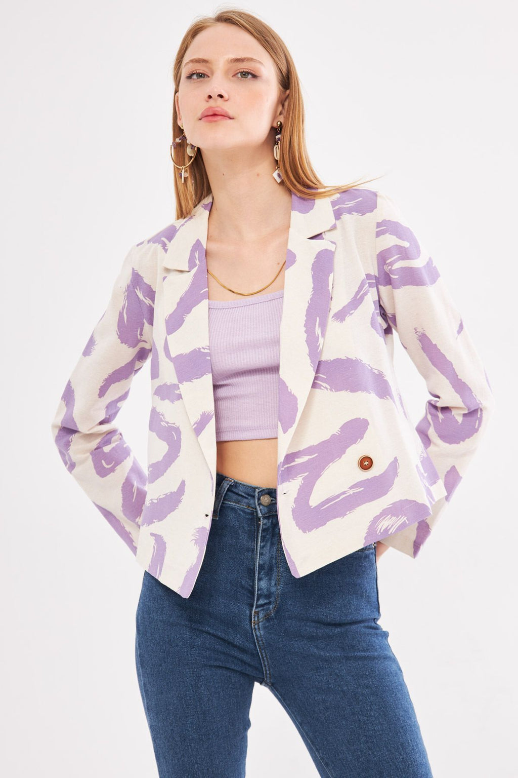 WOMEN'S LILA CREMAZE BOLE PATTERN CROP JACKET ARM-24Y001058
