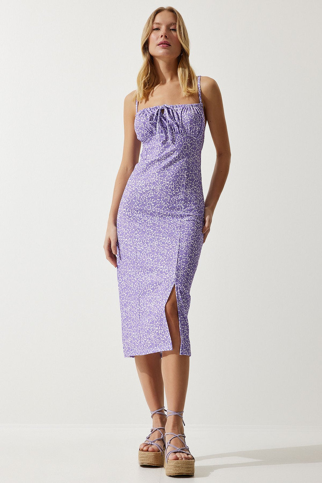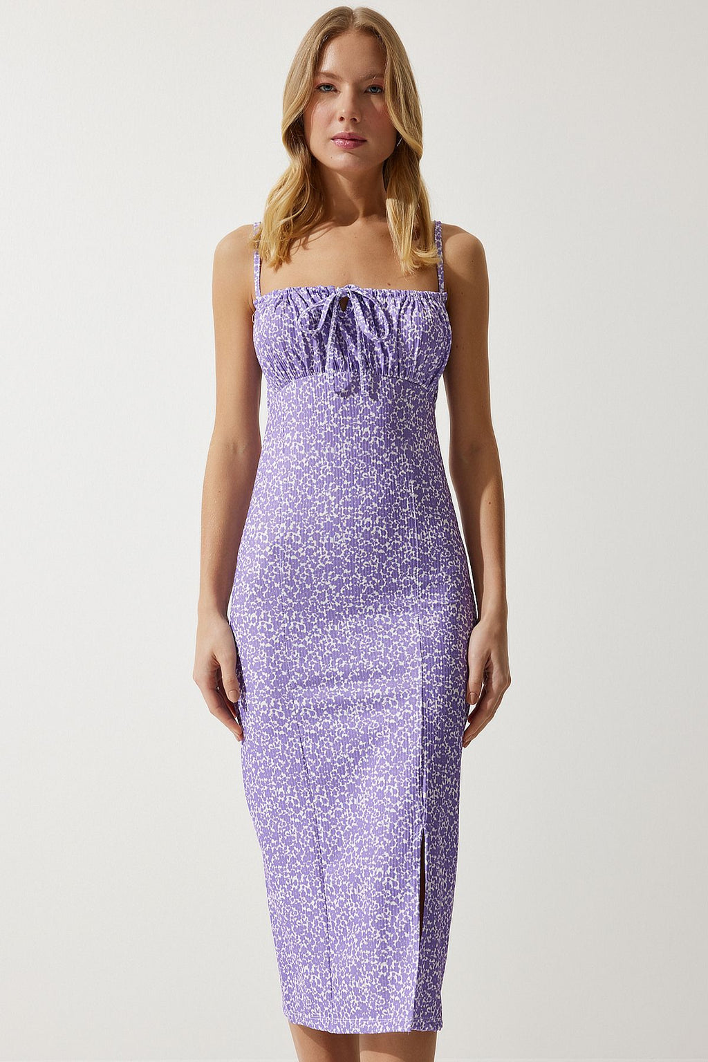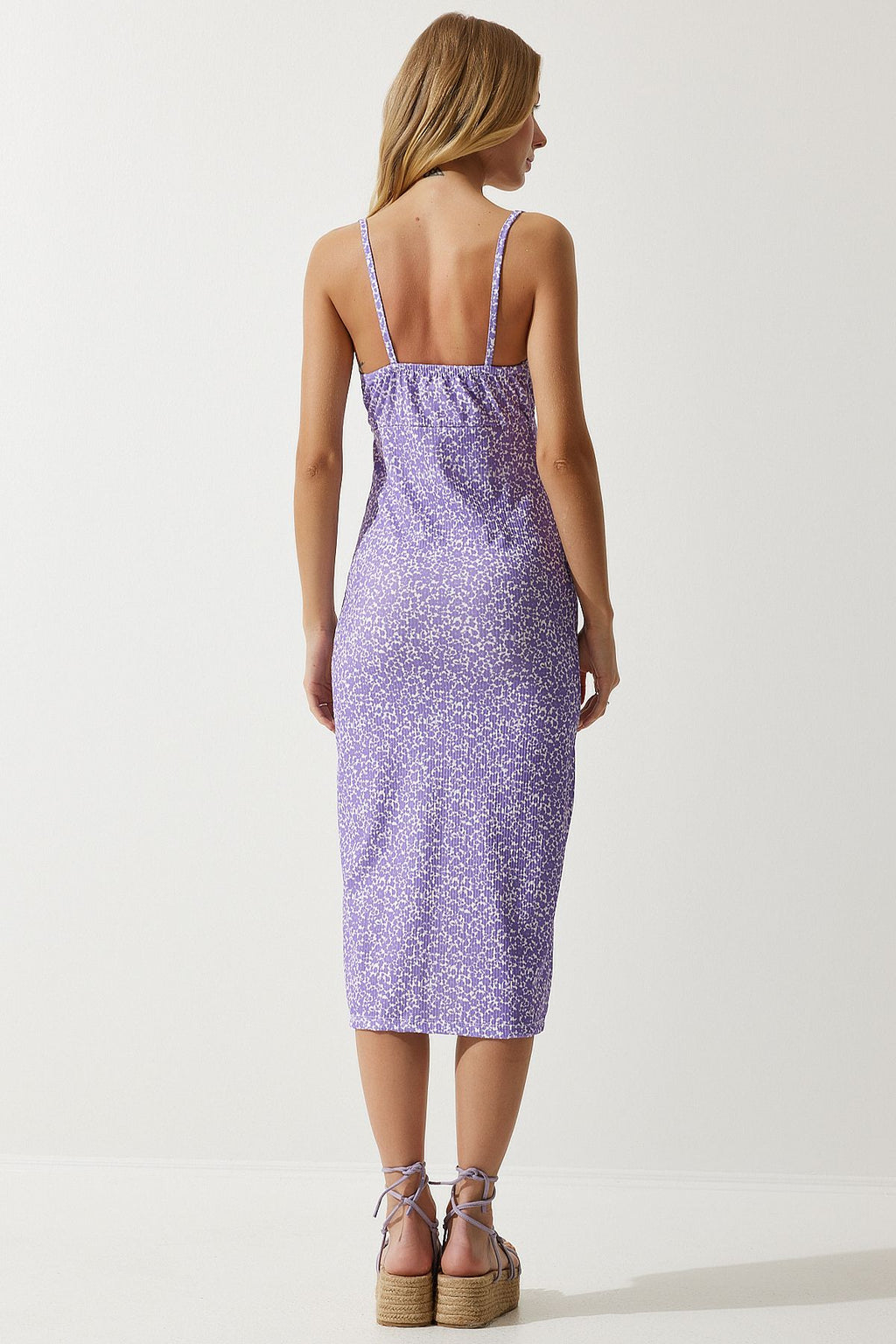 Women's Lilat White Flower Silen Summer Knitting Dress CI00029