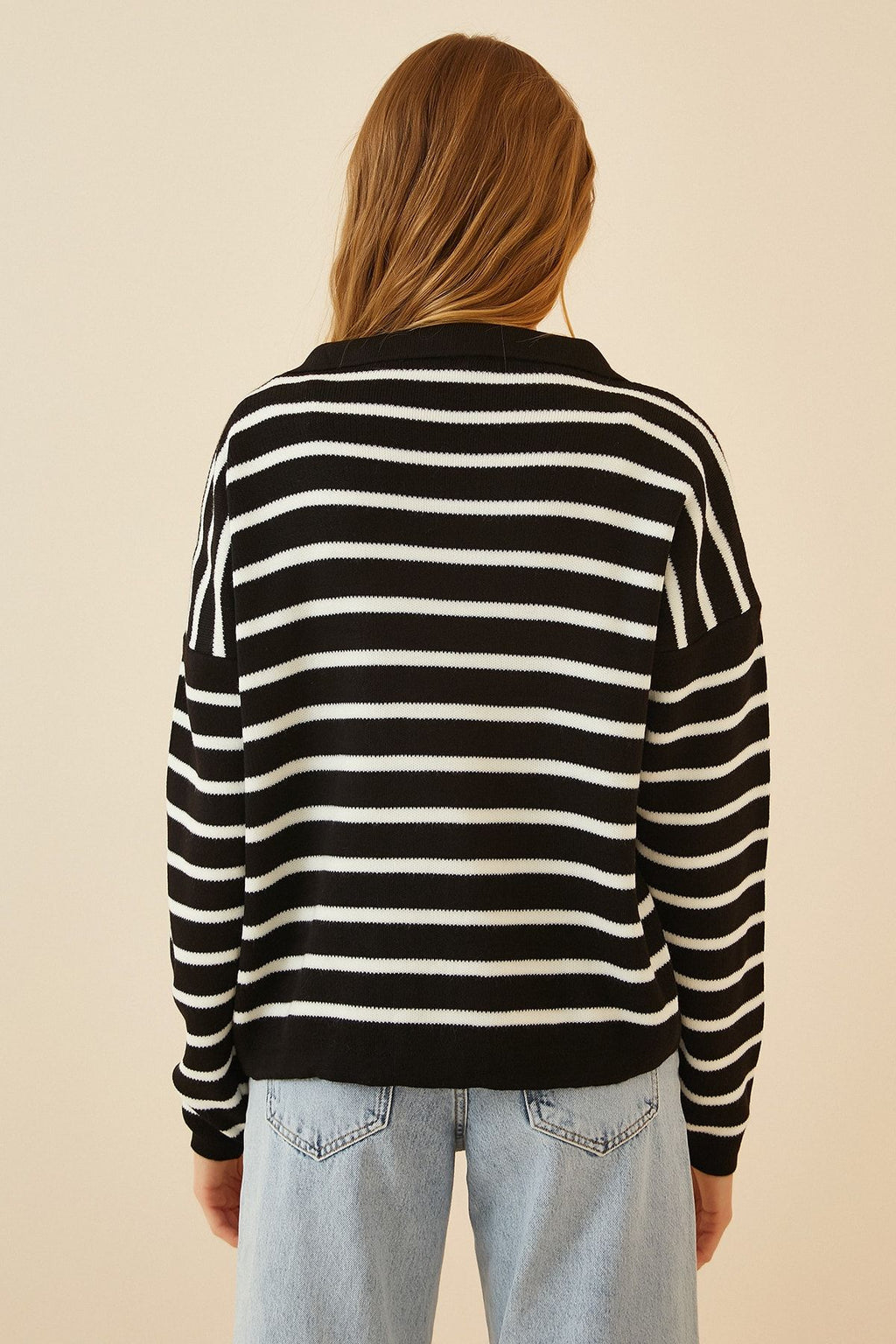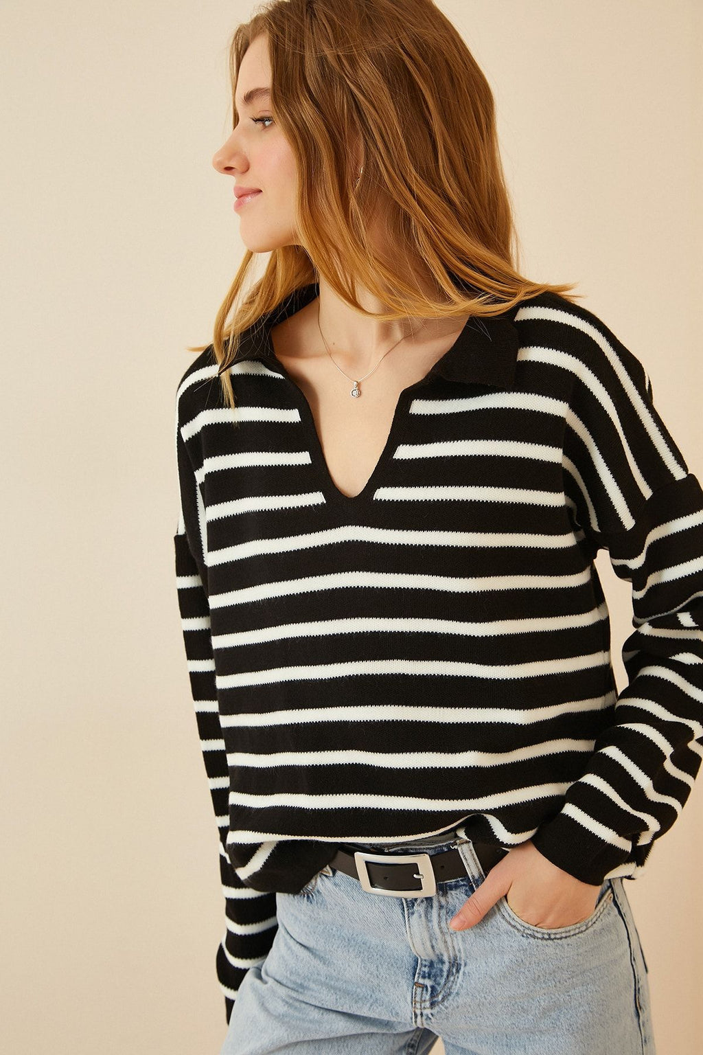 WOMEN'S LIVE BLACK Polo Yaka Crop Knitwear sweater US00293