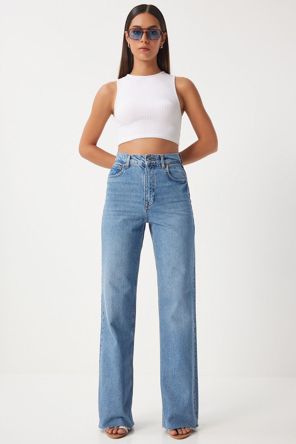 WOMEN'S MIDDLE BLUE WIDE LARGE POLICE JEAN UT00017