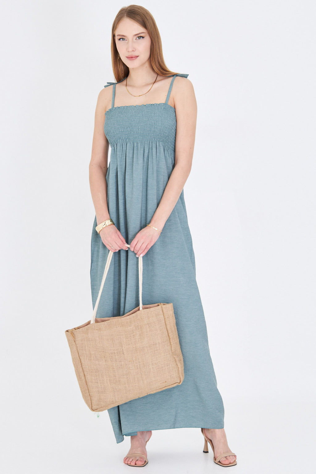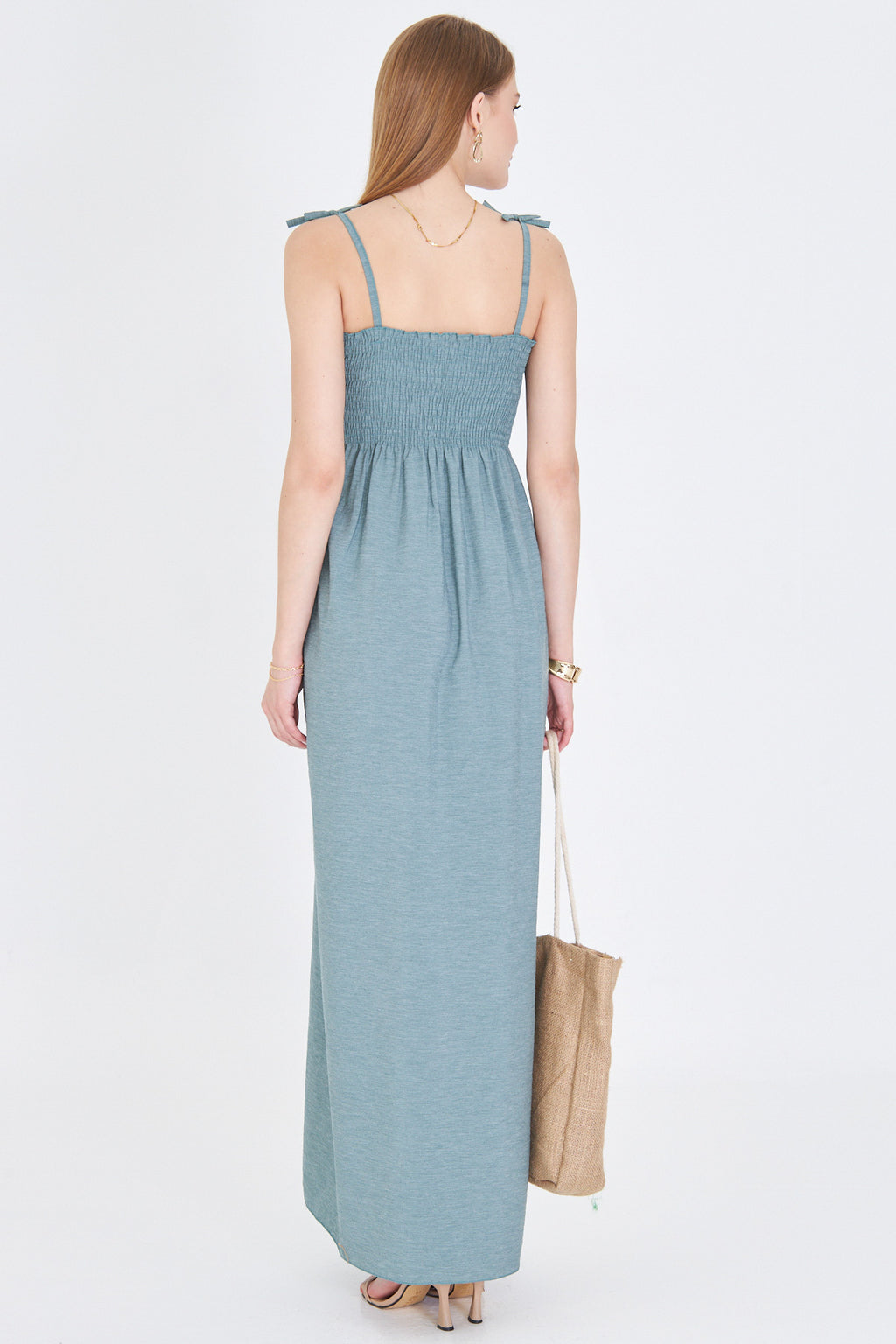 Women's Mint Straps Lace Up Chest Gimped Elastic Long Dress ARM-25Y001069