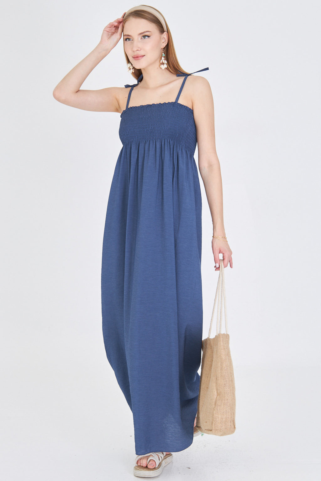 Women's Navy Blue Straps Lace Up Chest Gimp Elastic Long Dress ARM-25Y001069