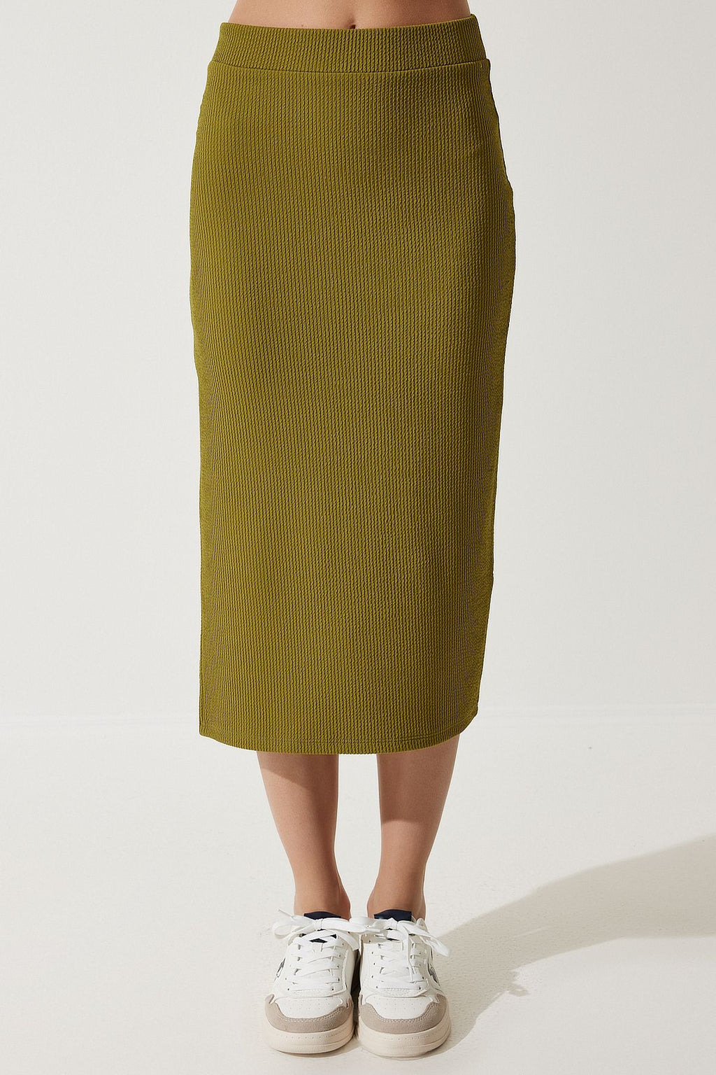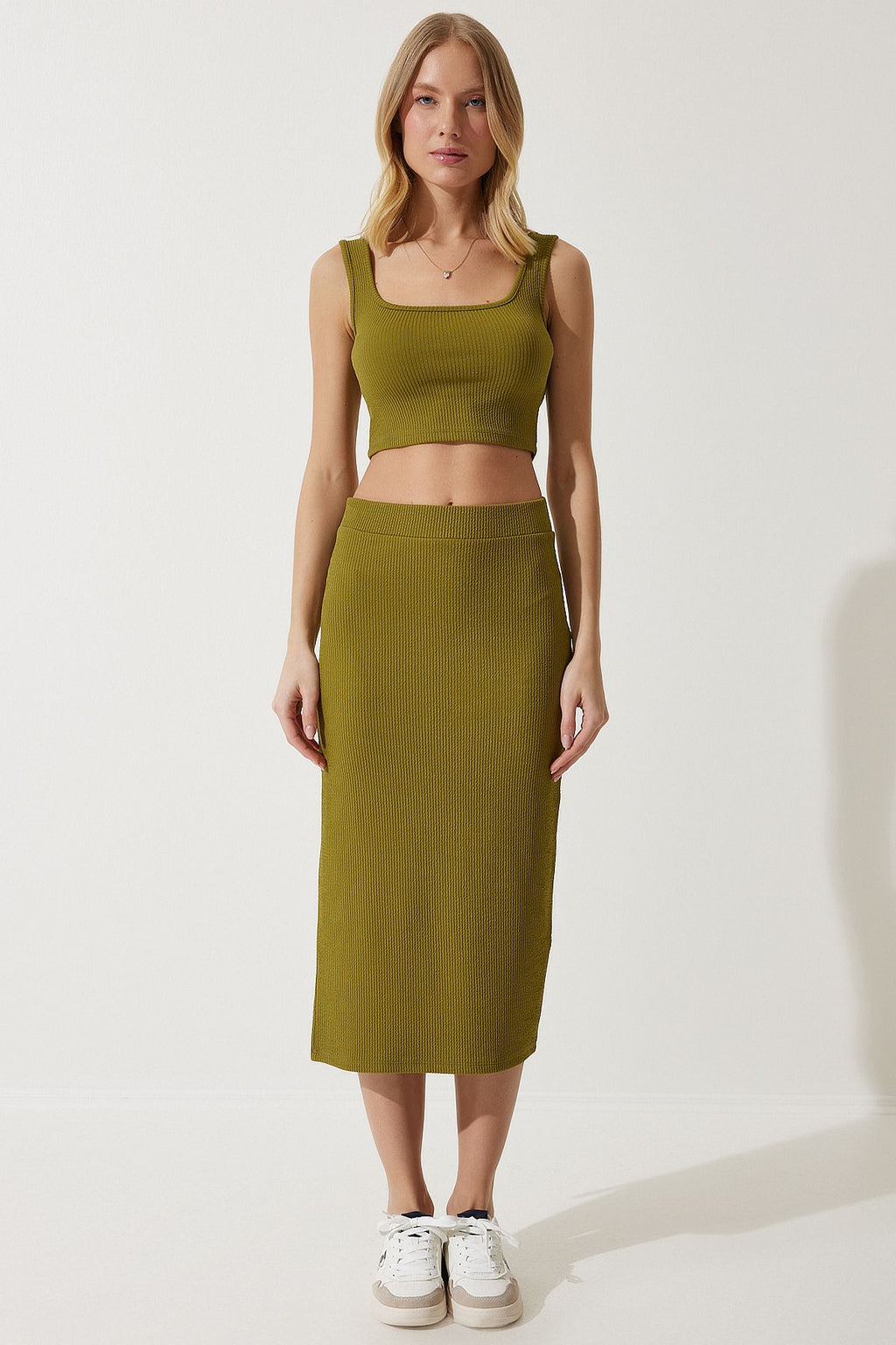 Women's Oil Green Hanger Crop pencil skirt knitting set OW00041