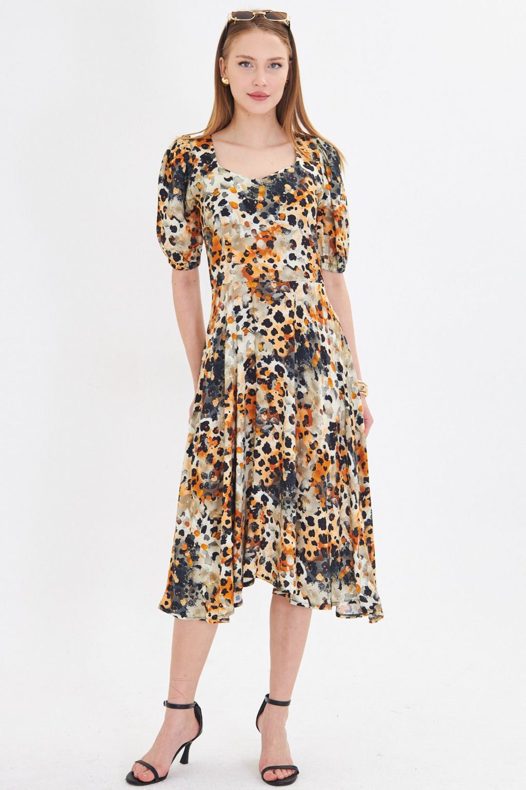 Women's Orange U collar arms with rubber midi height height dress ARM-25Y001004