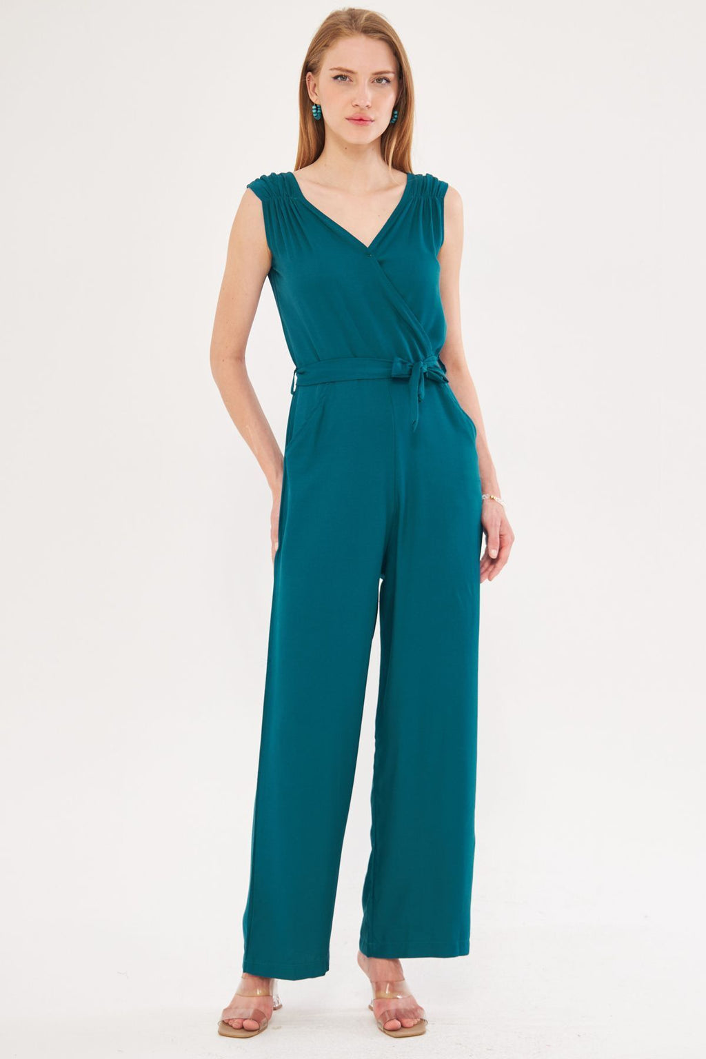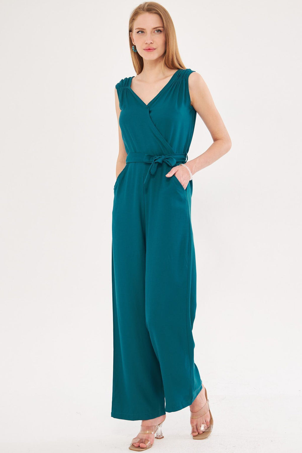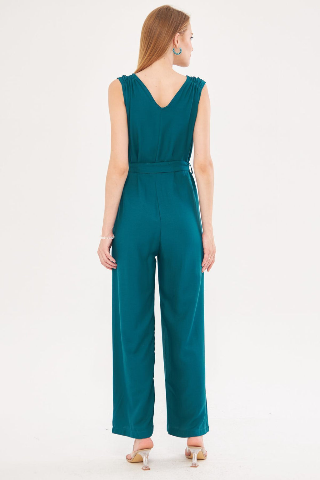 Women's Petroleum Cruiser Neck Shoulder Tire Detailed Red V Born Long Tulum ARM-24Y001049