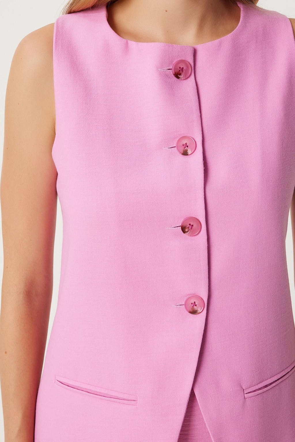 Women's Pink Fleto Pocket Detail Long Woven Vest FN03239
