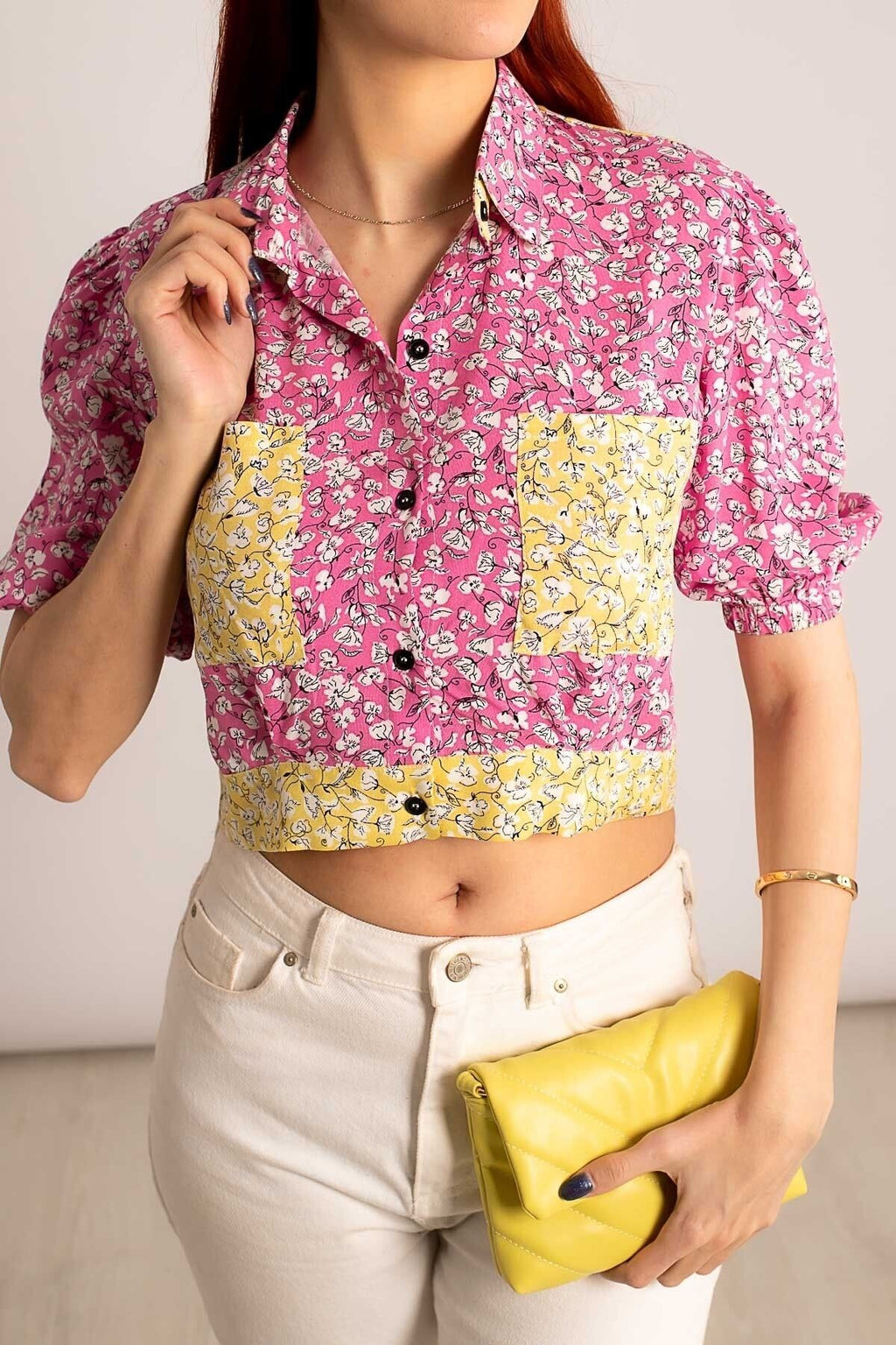 Women's Pink Lend Rubber Pocket Back Detail Crop Shirt ARM-23Y001006