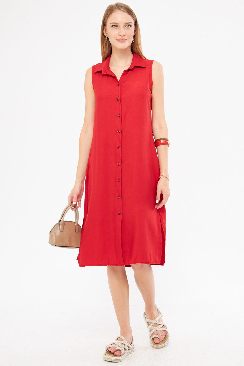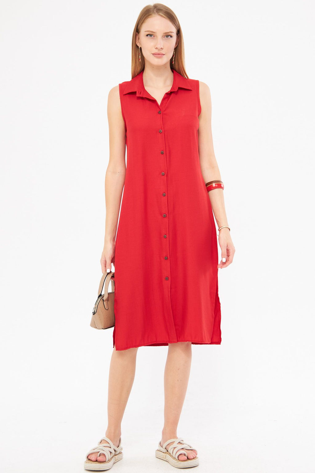 WOMEN'S RED BROTHED BUTTANT DRESS ARM-17Y00028
