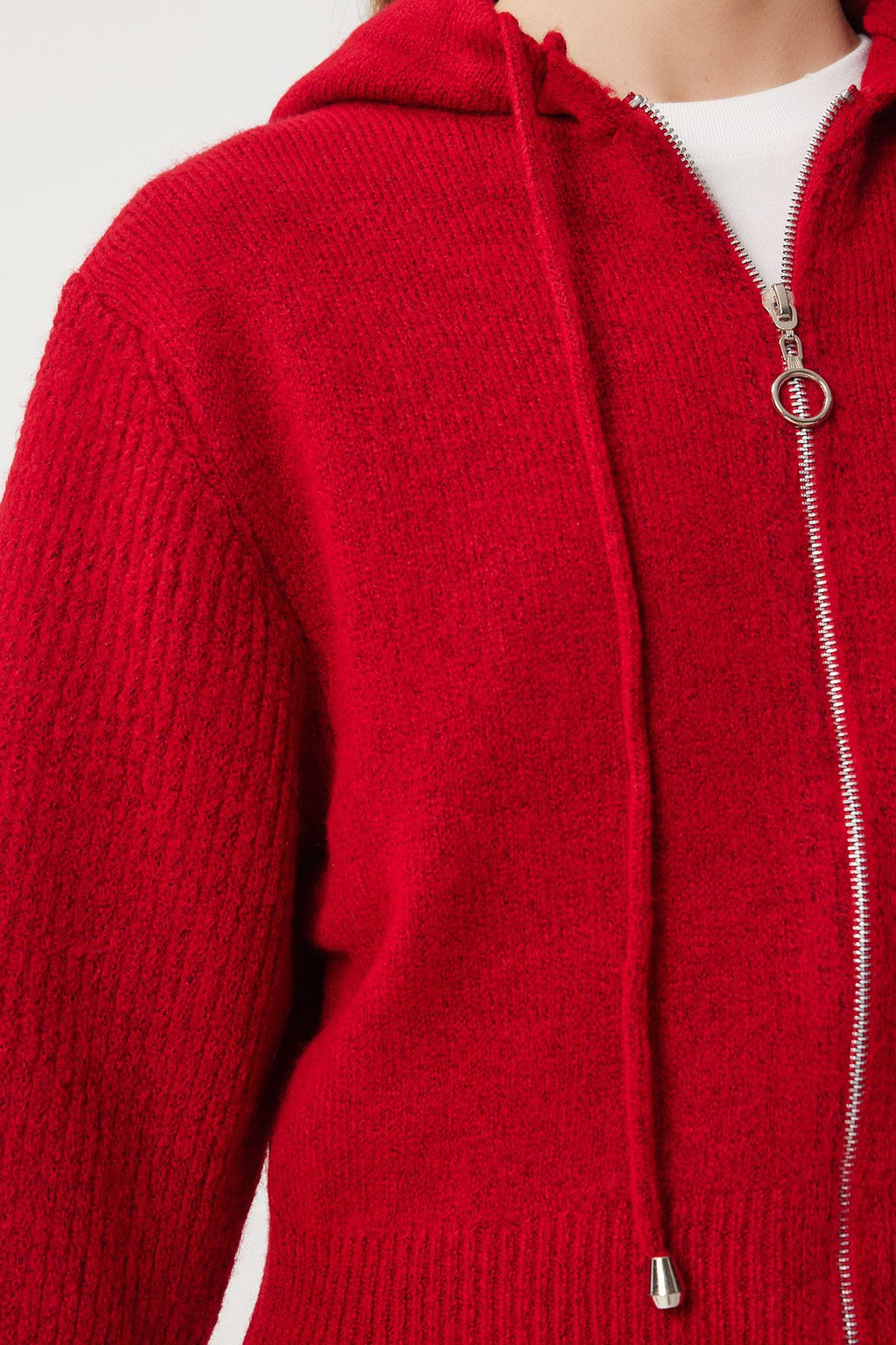 WOMEN'S RED HAPPENED ZIPPER KNIP CARDICE YY00203