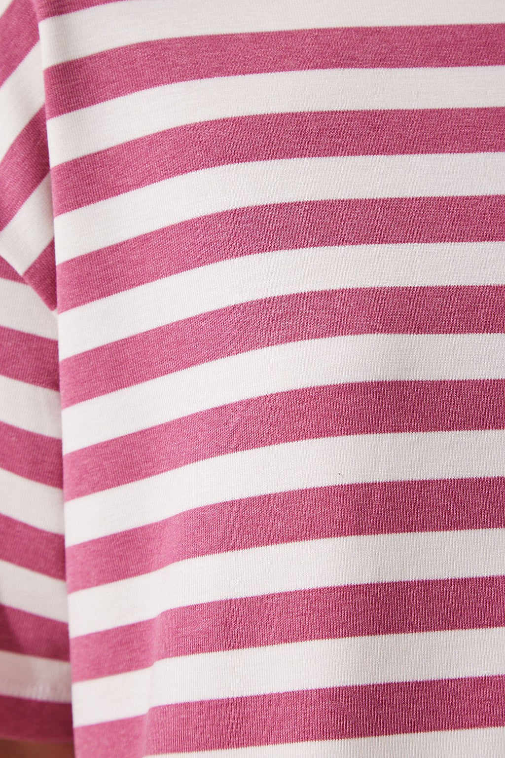 WOMEN'S ROSE KIZI BICYCLE COLLAR striped Crop knitting T-shirt CR00427