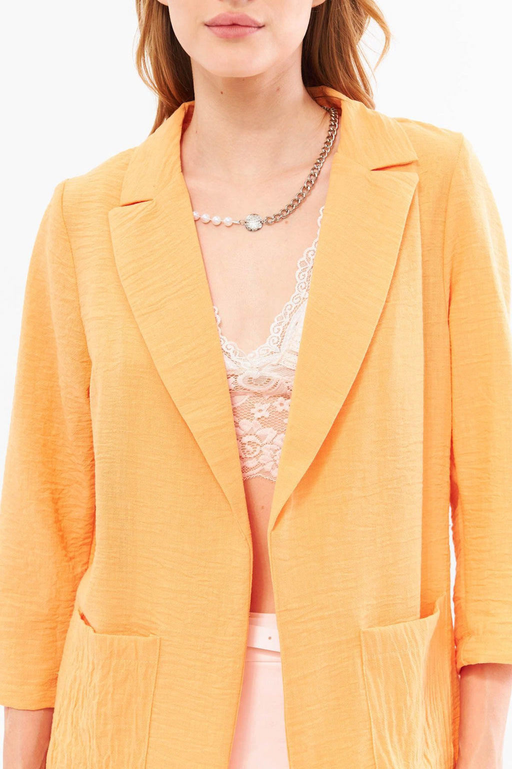 Women's Salmon Linen Look Oversize Jacket with Pockets ARM-24Y001065