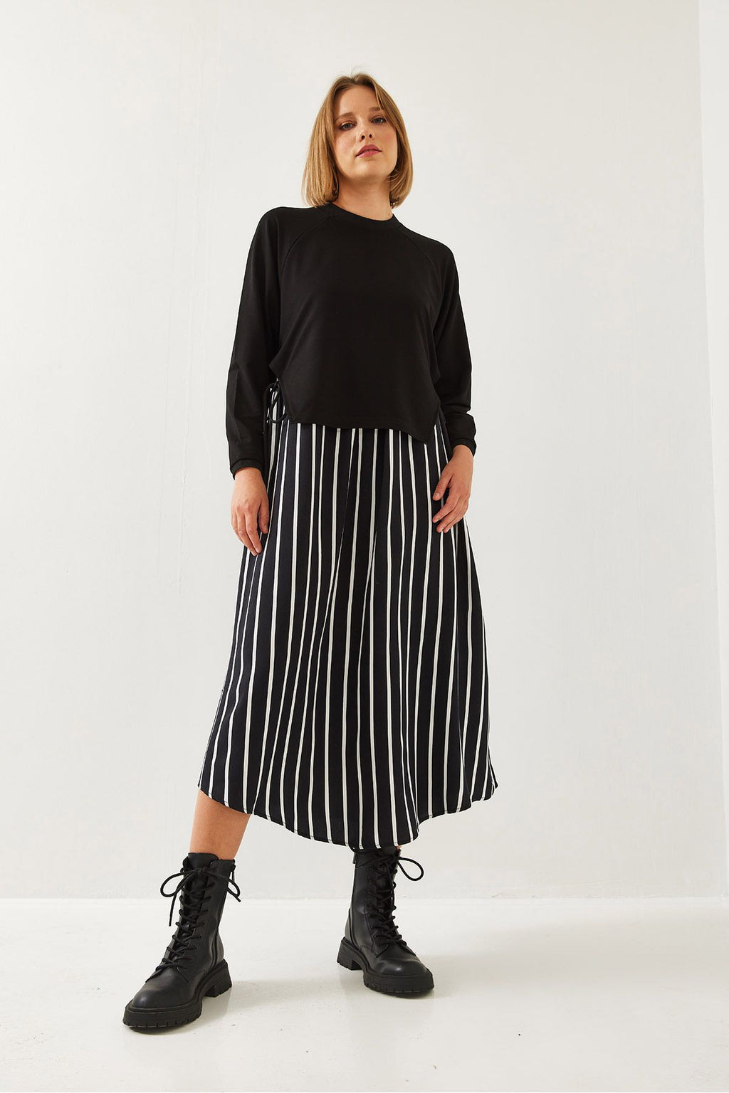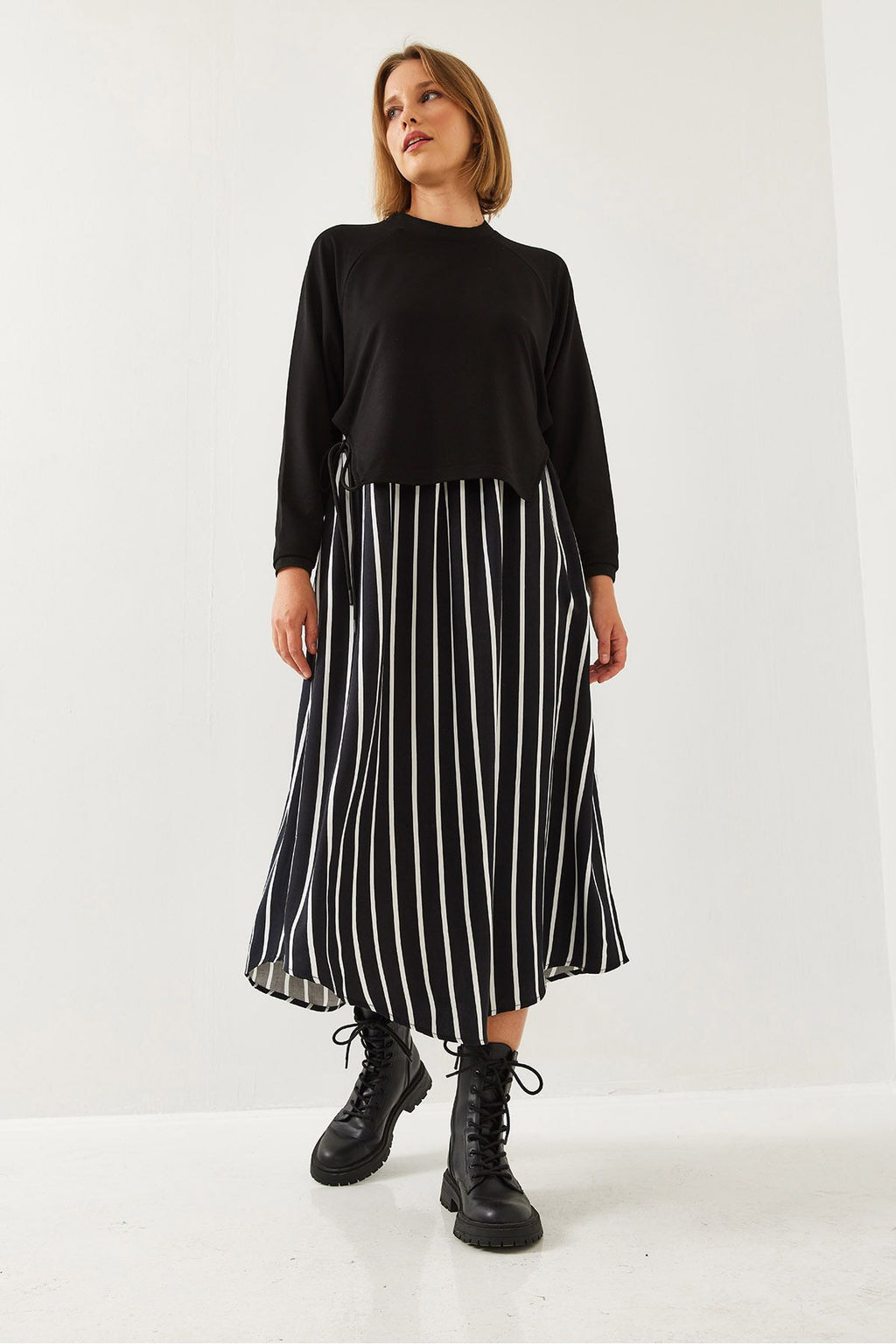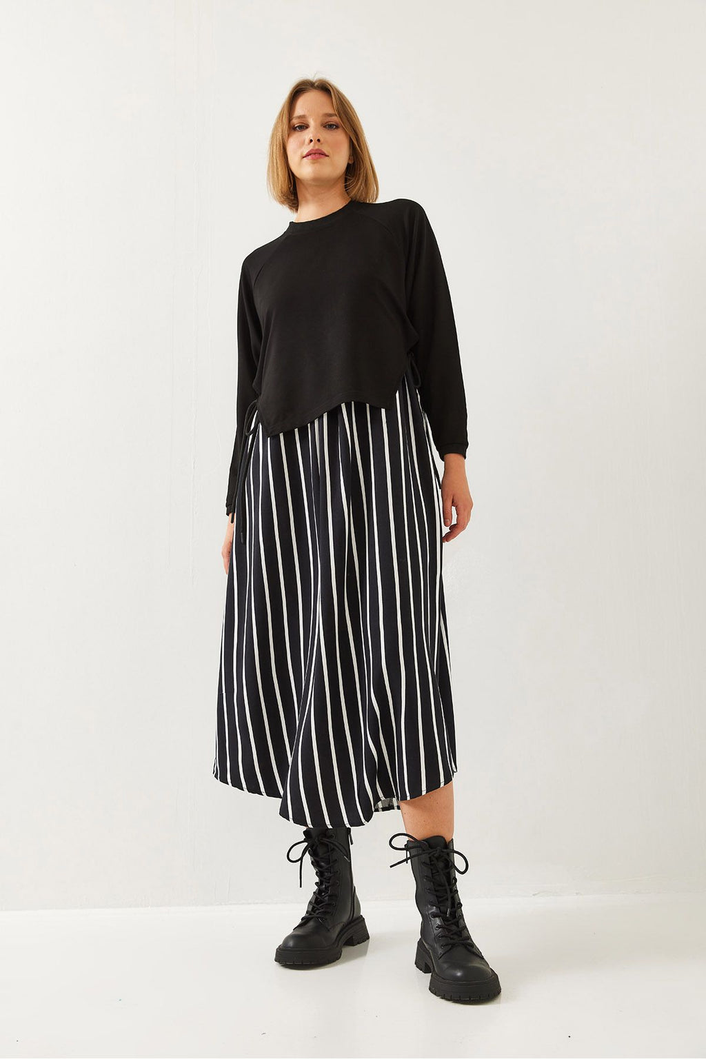 WOMEN'S SIDE -Connecting Skirt Patterned Long Sleeve Dress 60351251