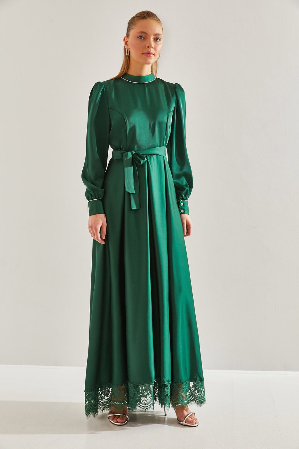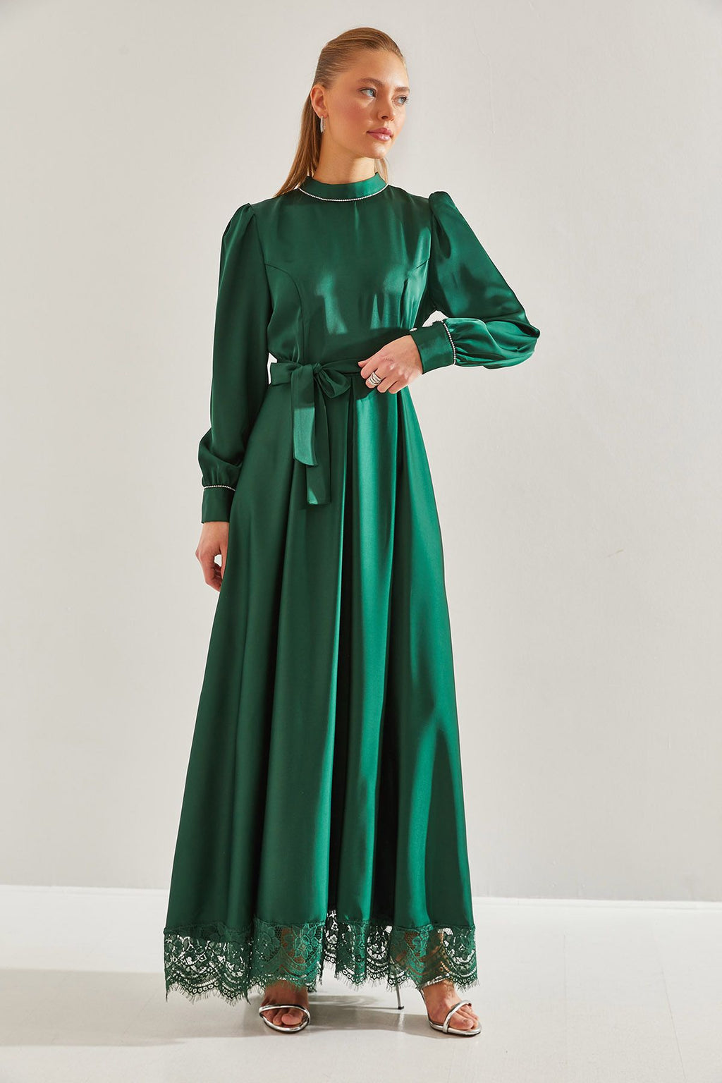 Women's Skirt Lace Side and Handle Satin Hijab Dress 60191005