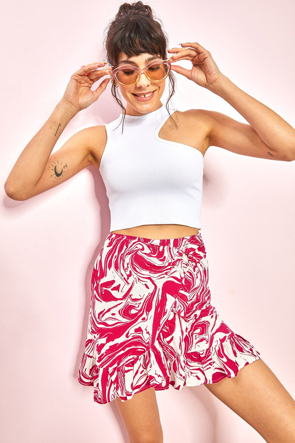 Women's Skirt Ruffle Buckle Detailed Patterned Linen Skirt 7079 30971019