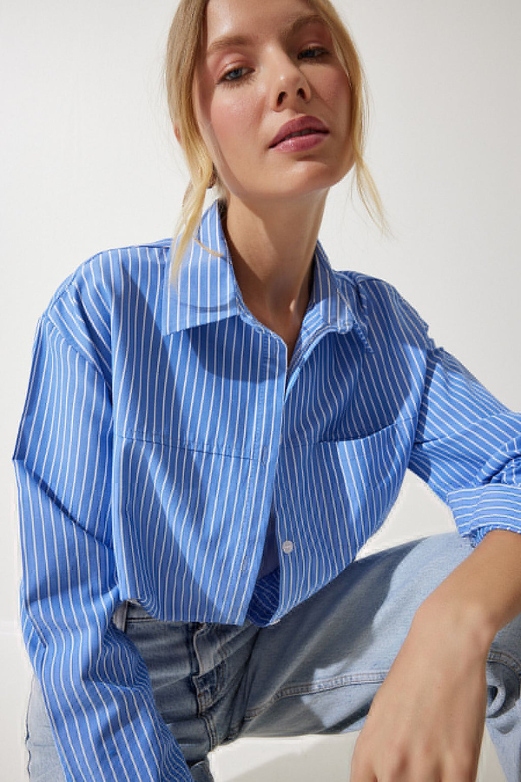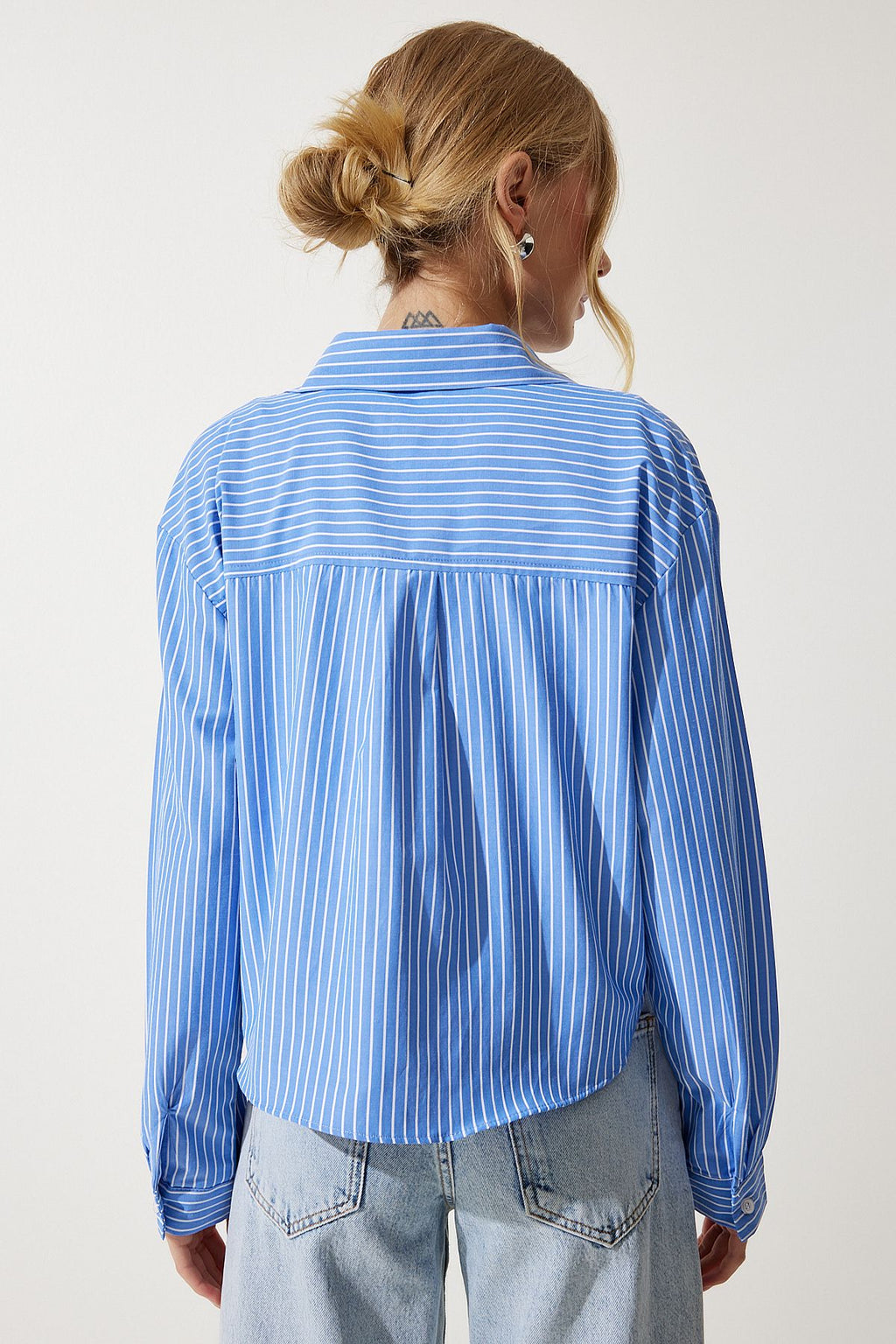 Women's Sky Blue Blouse Detail Crop Shirt RG00022