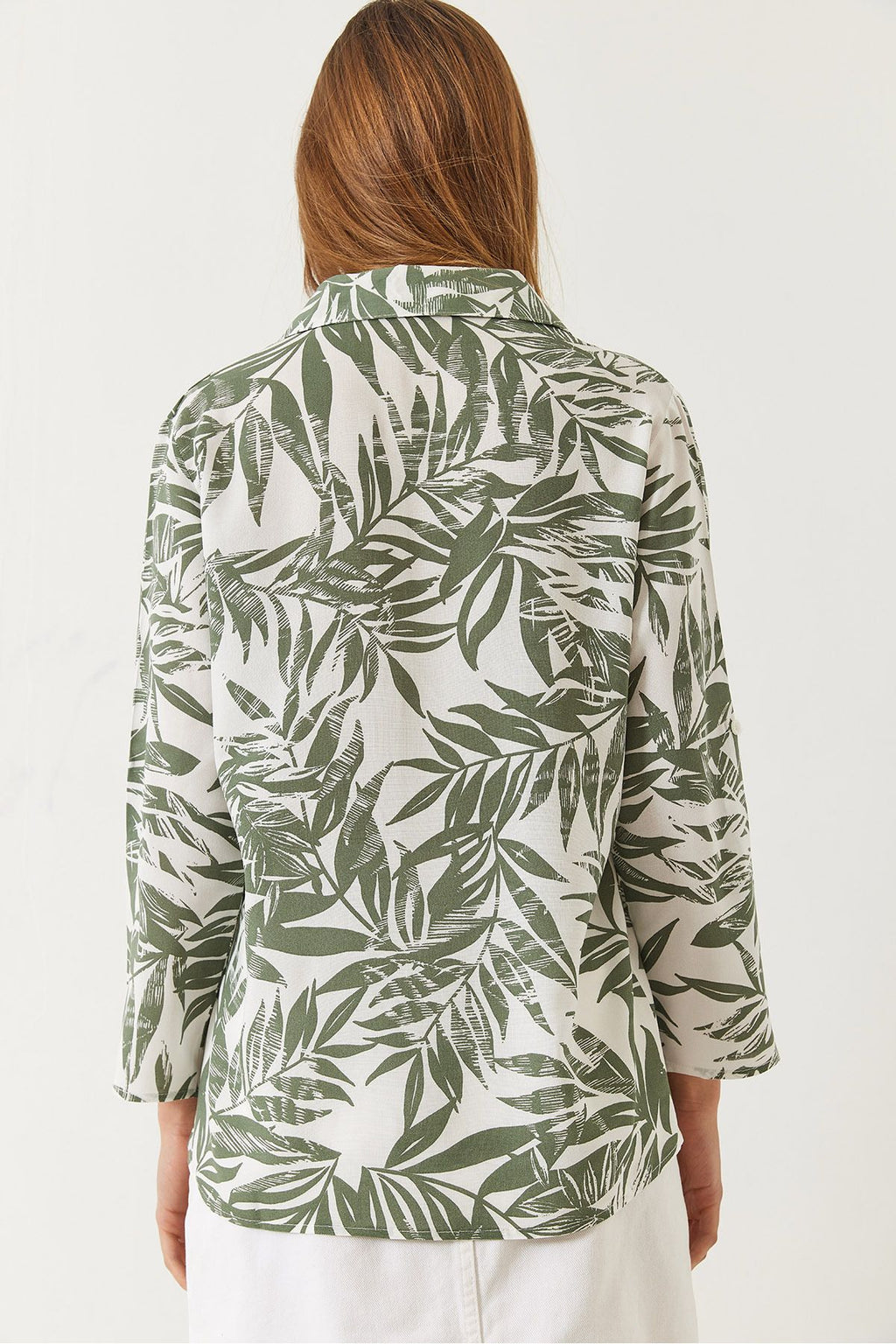 Women's Sleeve Folded Leaf Patterned Viscose Shirt 60261452