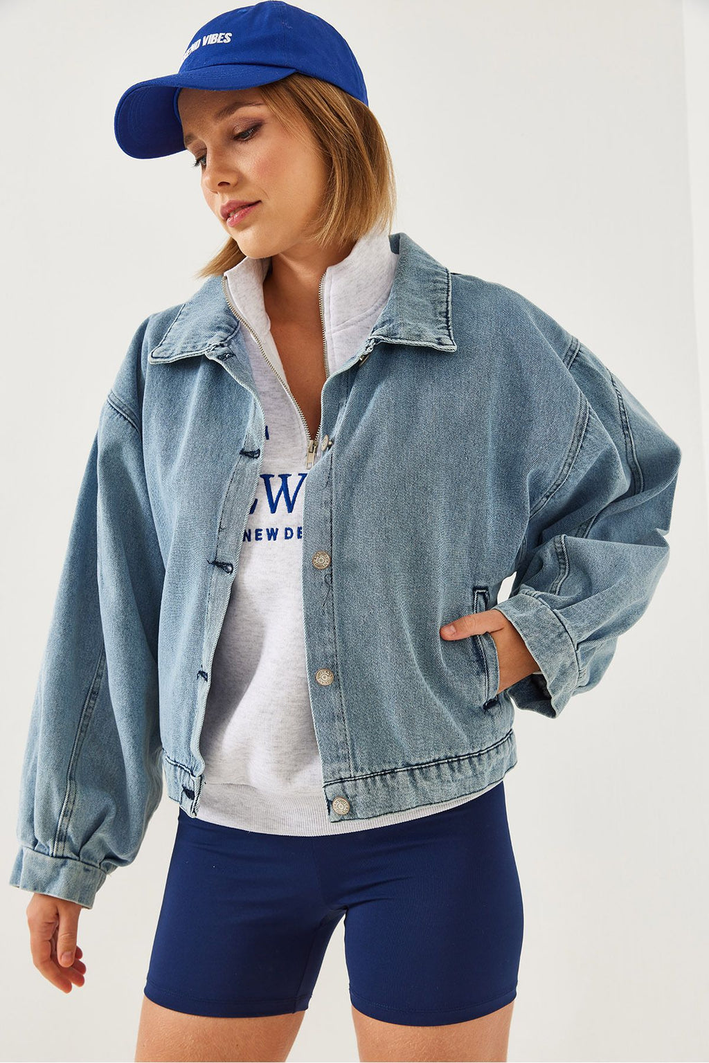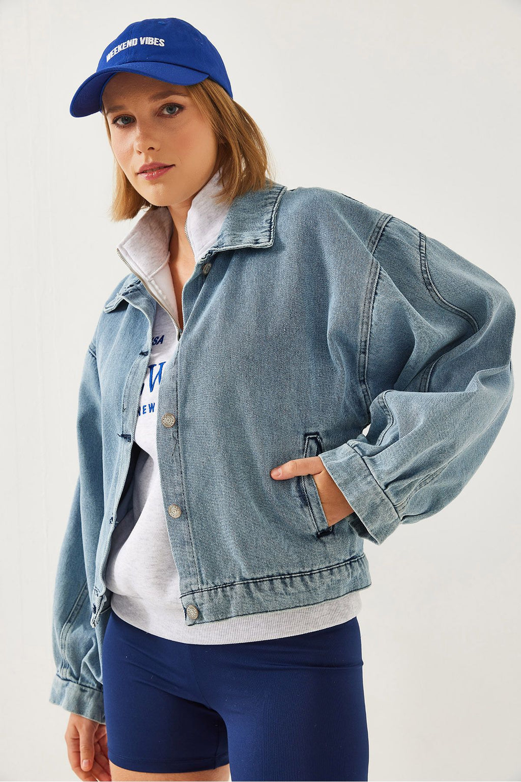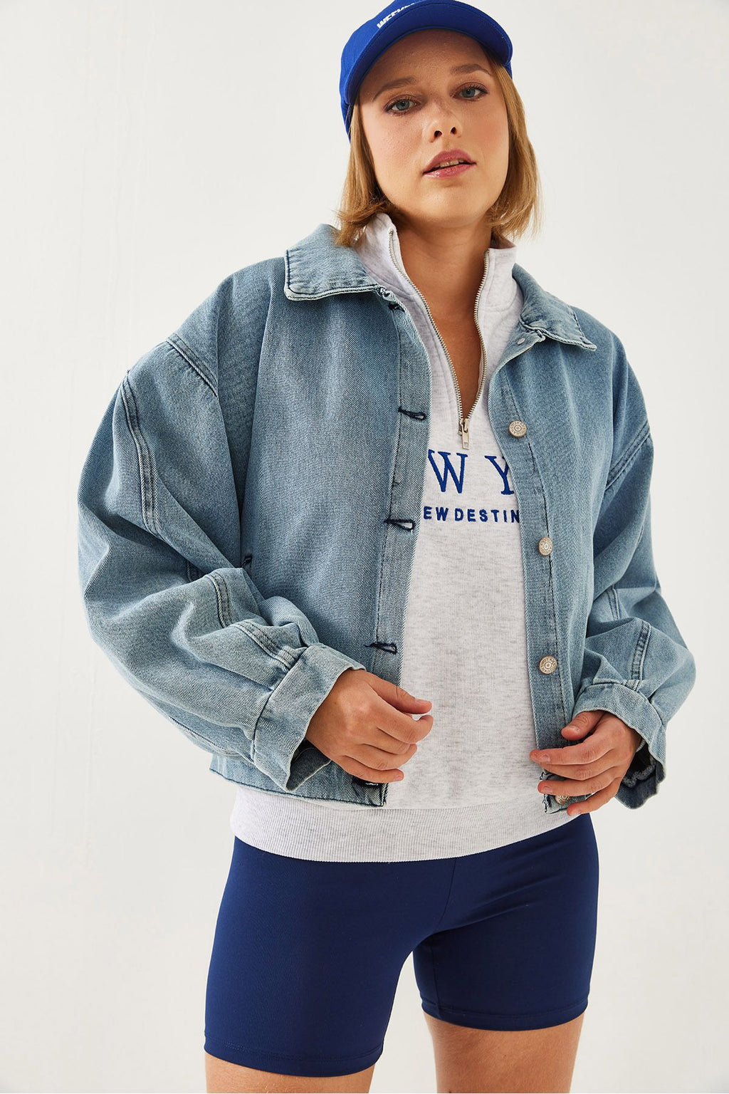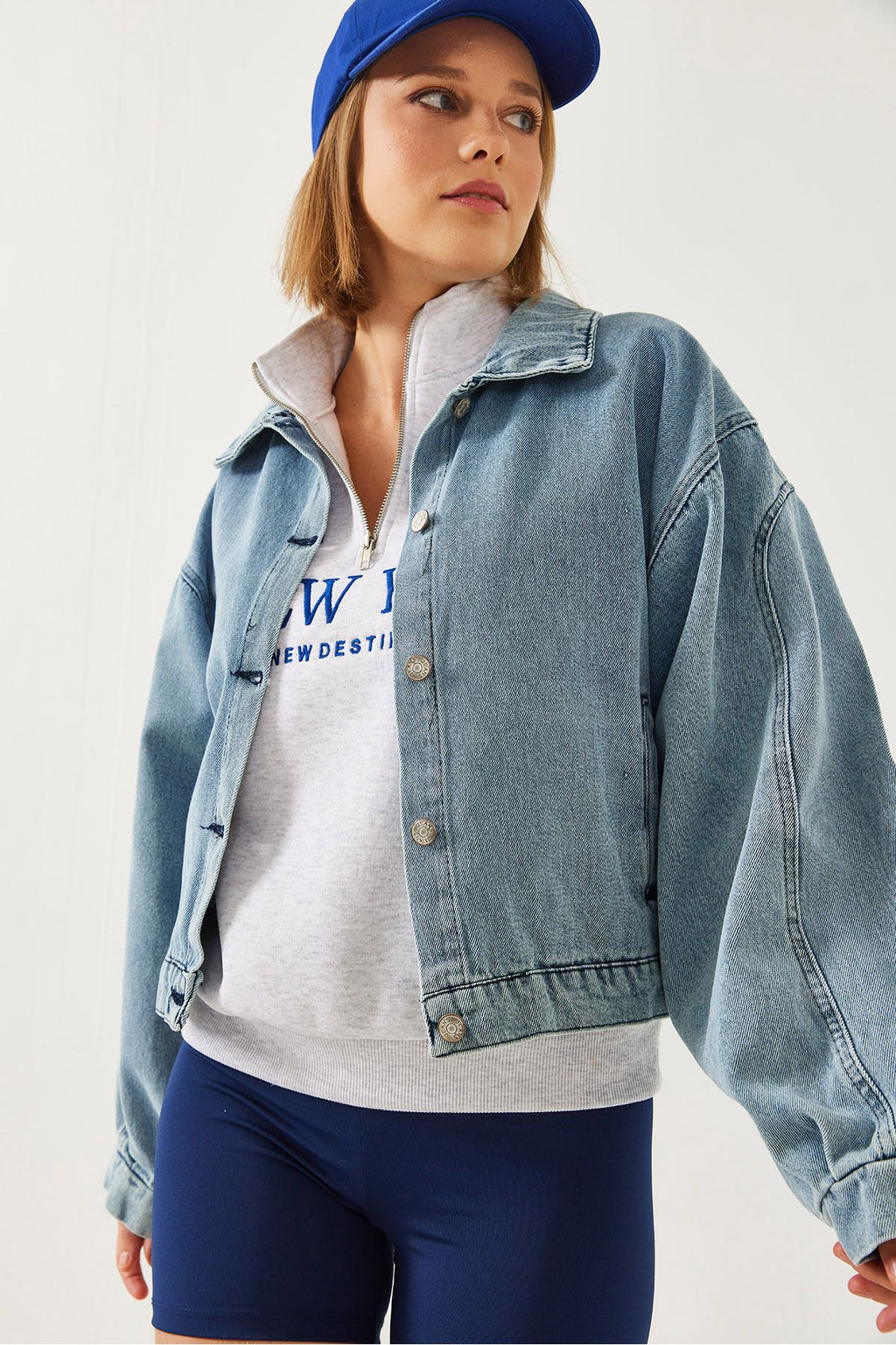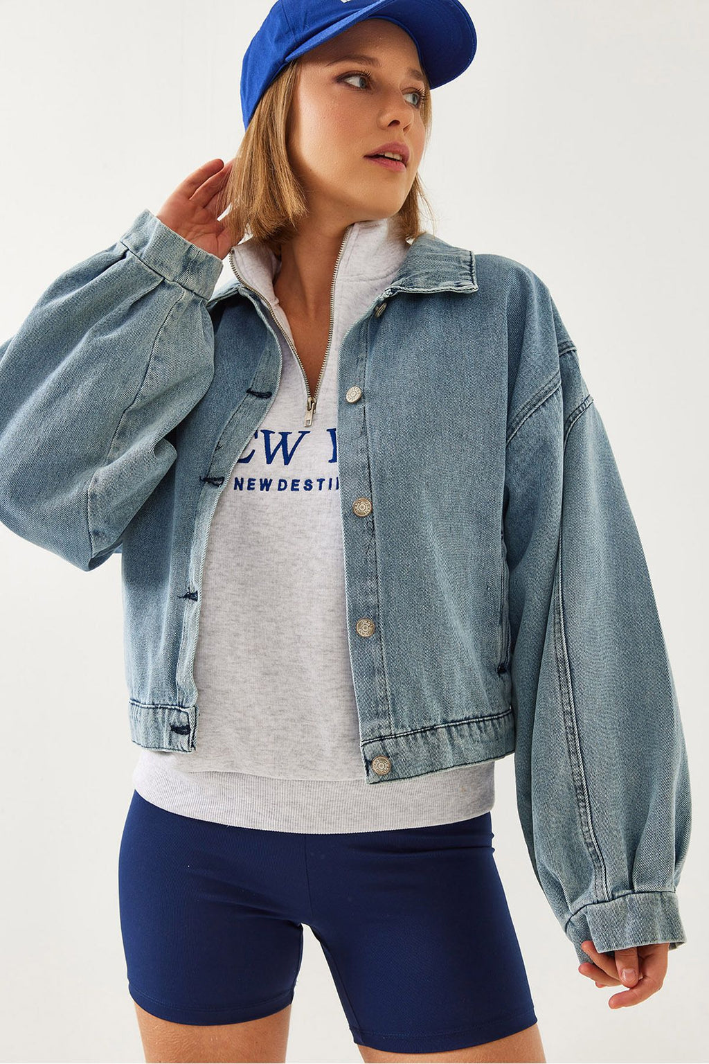 Women's Sleeve Pile Detail Denim Jacket 2437 60351172