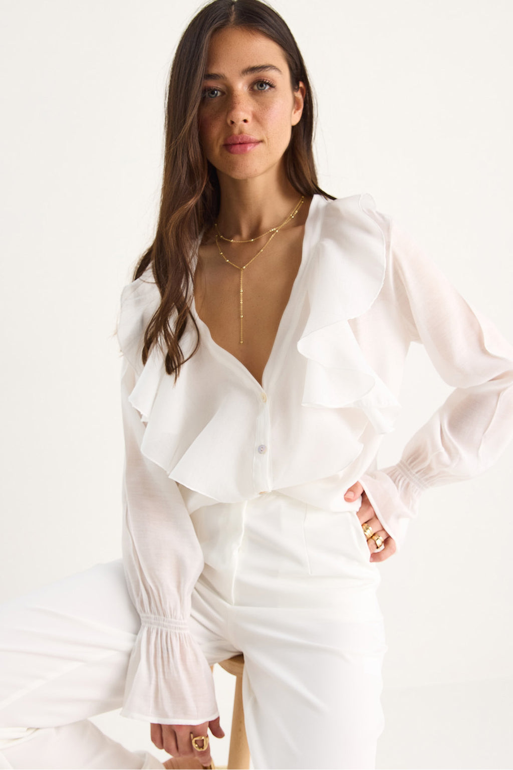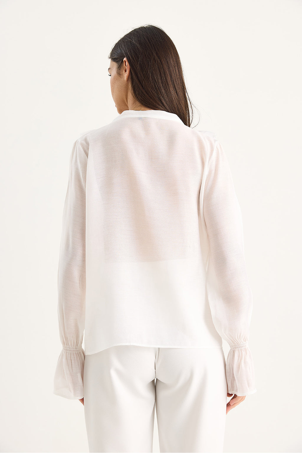 Women's Stylish Shirt with Ruffled Collar and Gathered Sleeves 60283413