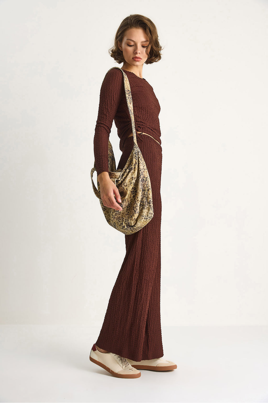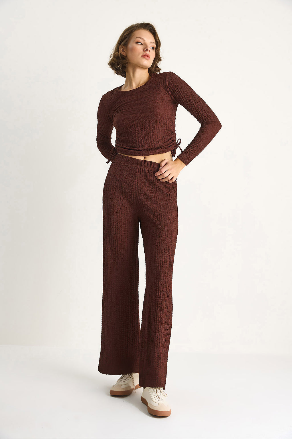 Women's Sweater Suit with Side Tie Crop Elastic Waist High Waist Trousers 8075 60284110
