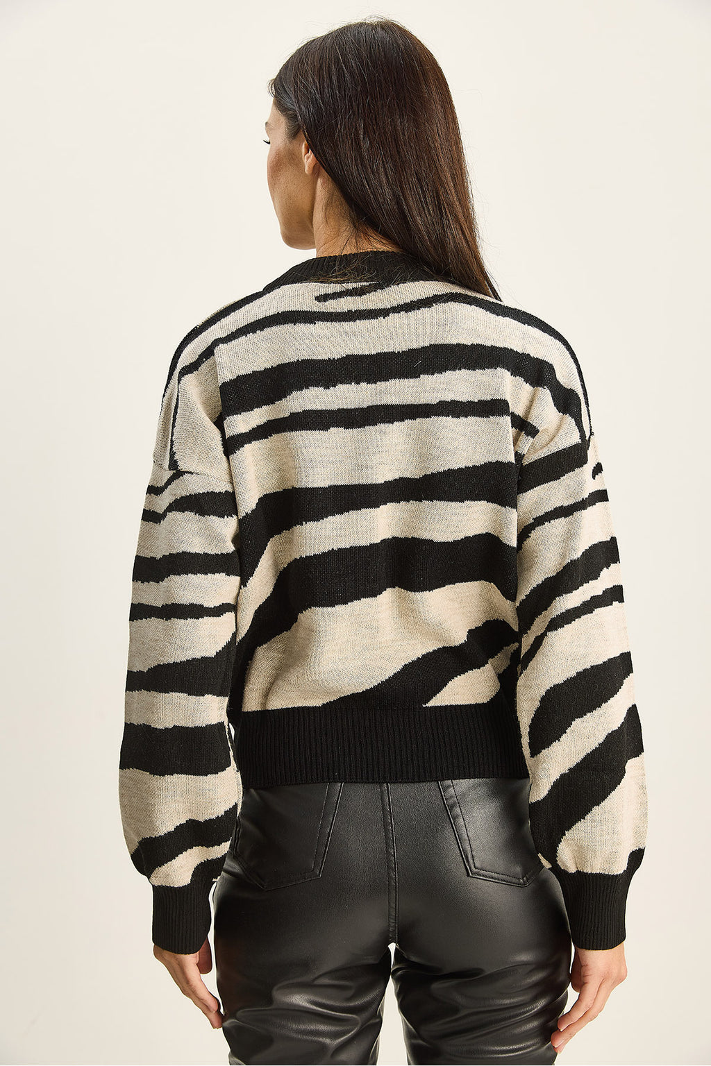 Women's Thick Zebra Patterned Crew Neck Knitwear Sweater 60285007
