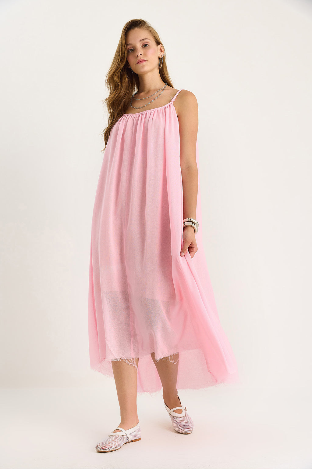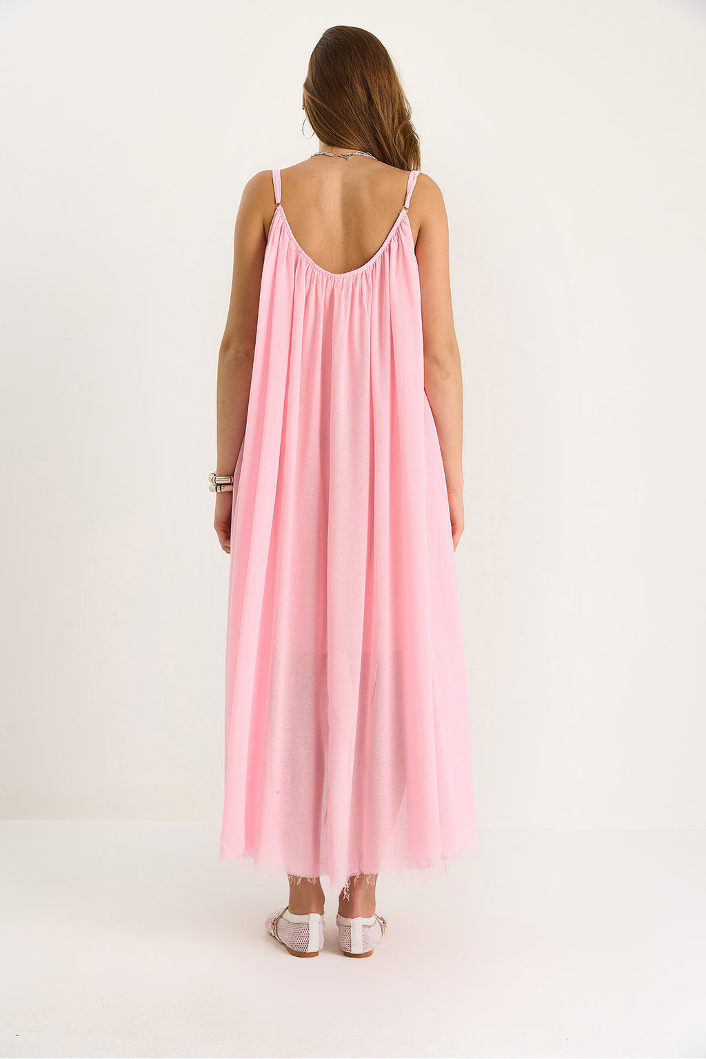 Women's Thin Strap Casual Lined Cotton Summer Long Dress 5971 60281106