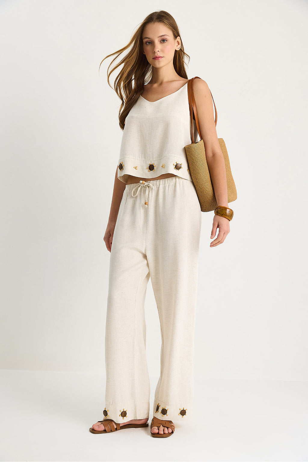 Women's Thin Strap V-neck Blouse Comfortable Fit Trousers Accessory Linen Suit B28-4900 60283506