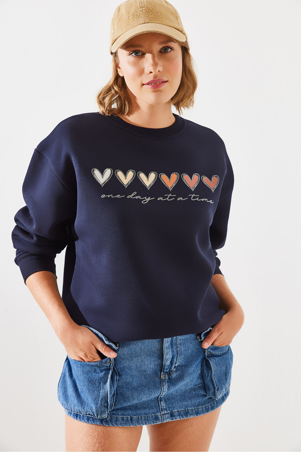 Women's Three Thread Raised Colored Heart Printed Sweatshirt MBHS007 60601007