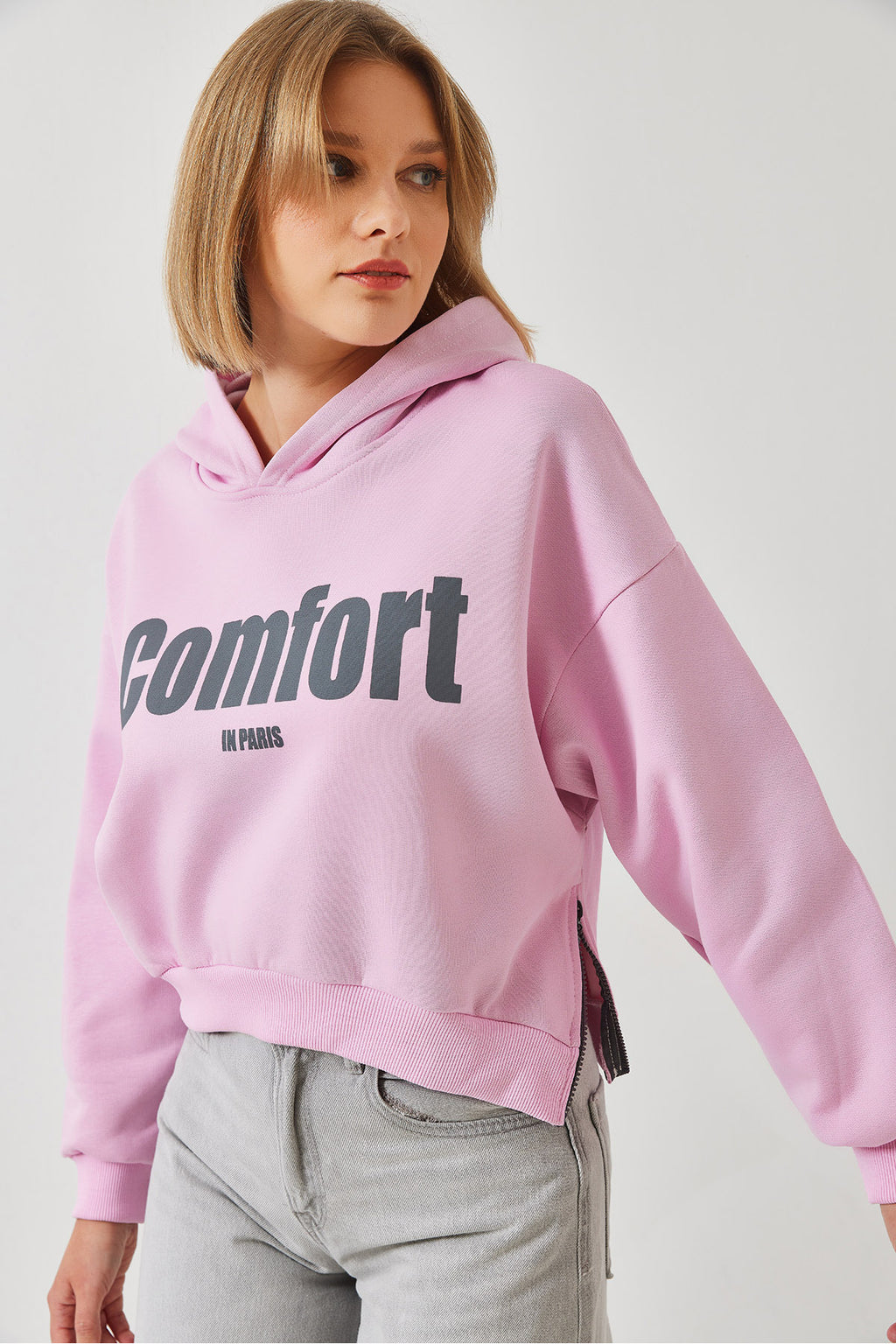 Women's Three Thread Raised Crop Sweatshirt with Side Zippers 60261016