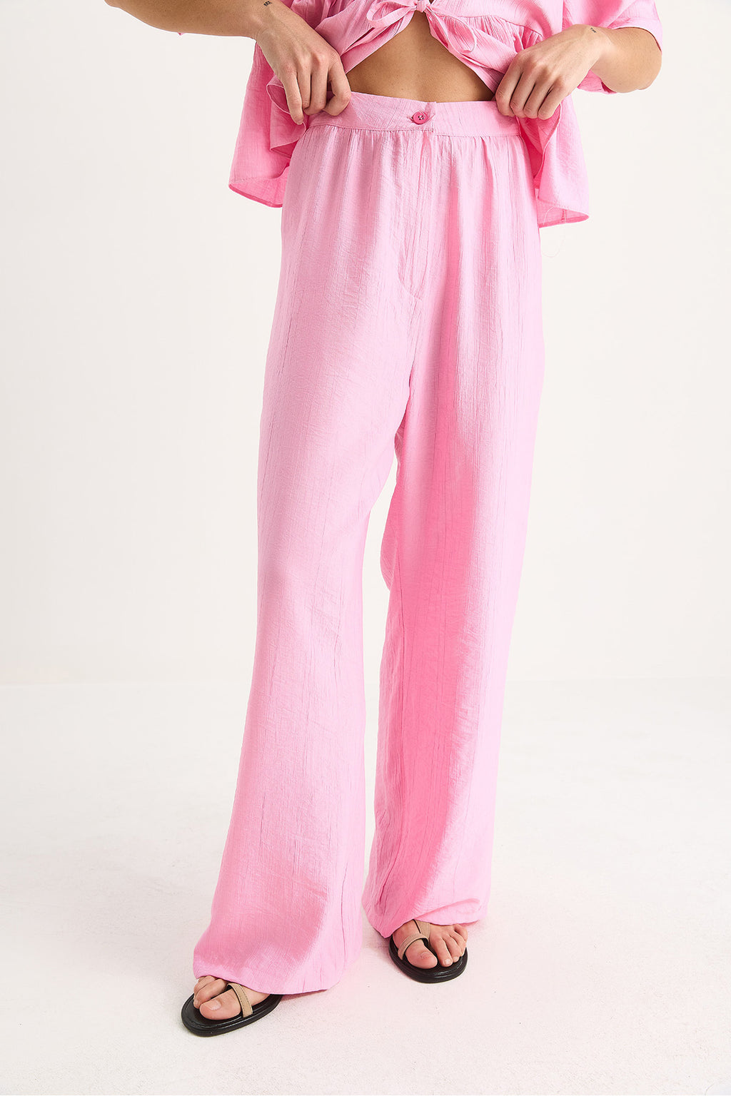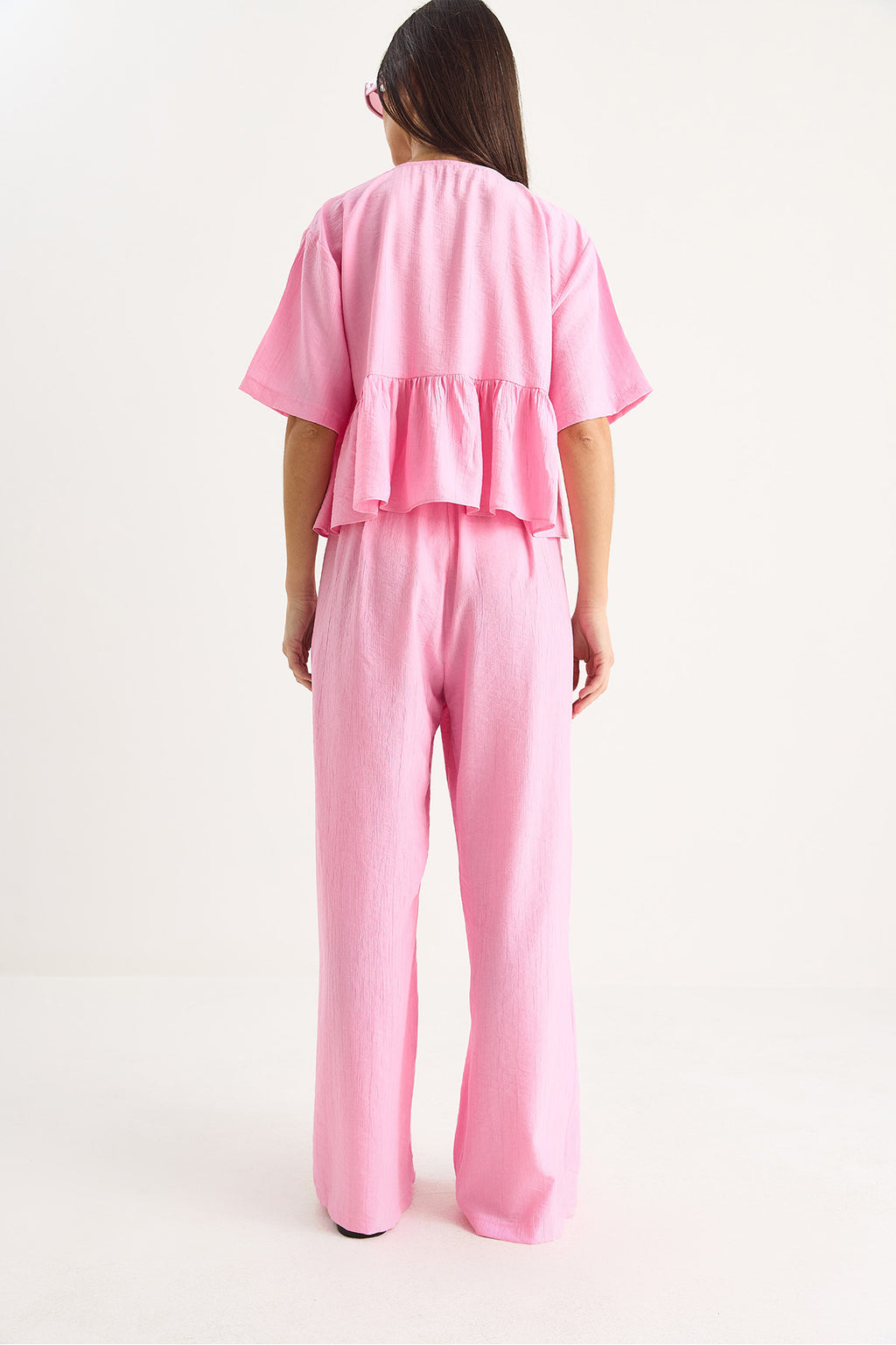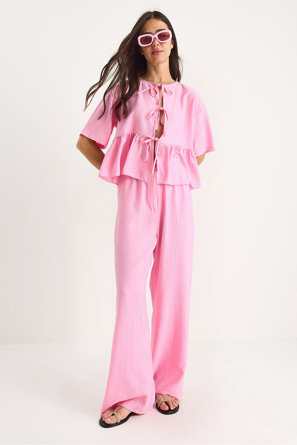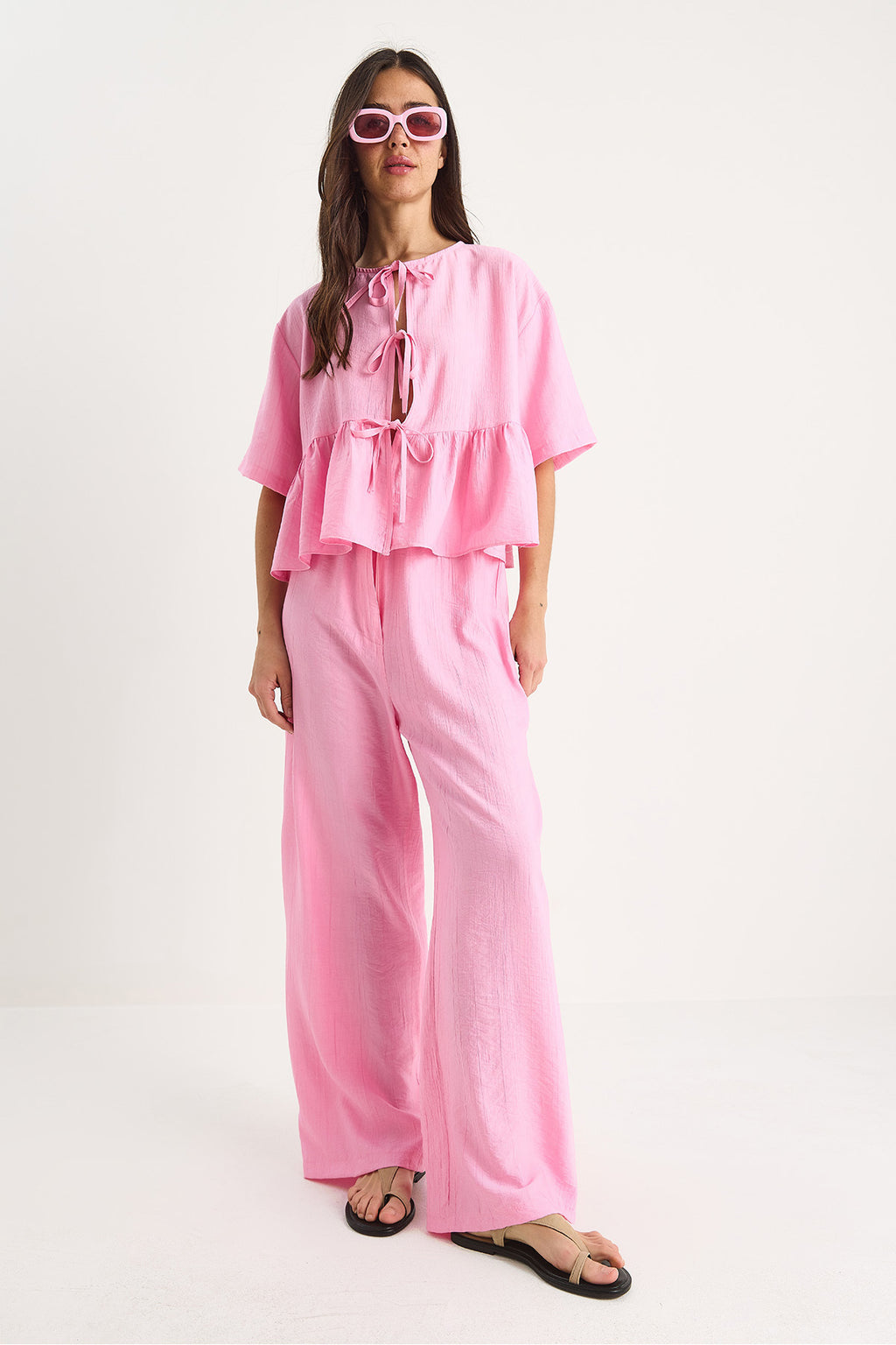 Women's Tie Detailed Short Sleeve Blouse Trousers Bottom-Top Set 9265 60281014